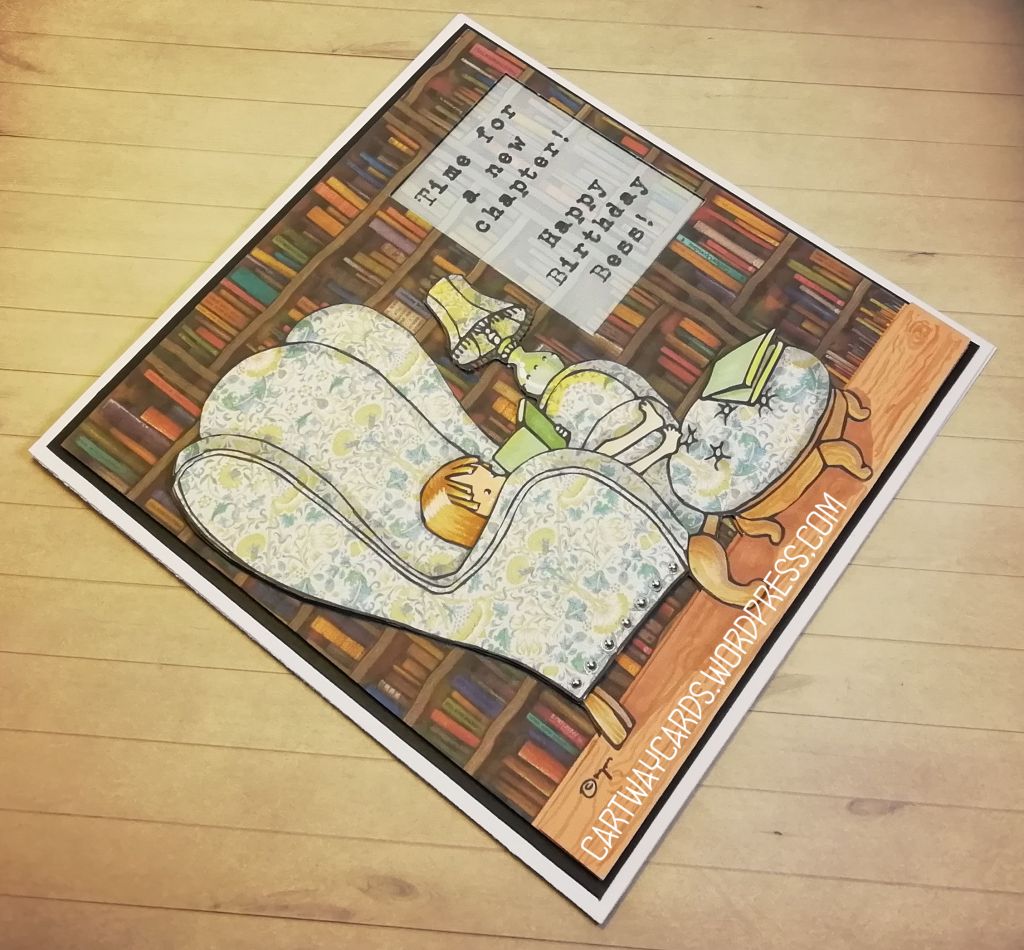 Sharing a quick card today using a Mo’s Digital Pencil stamp called “A Good Book”.