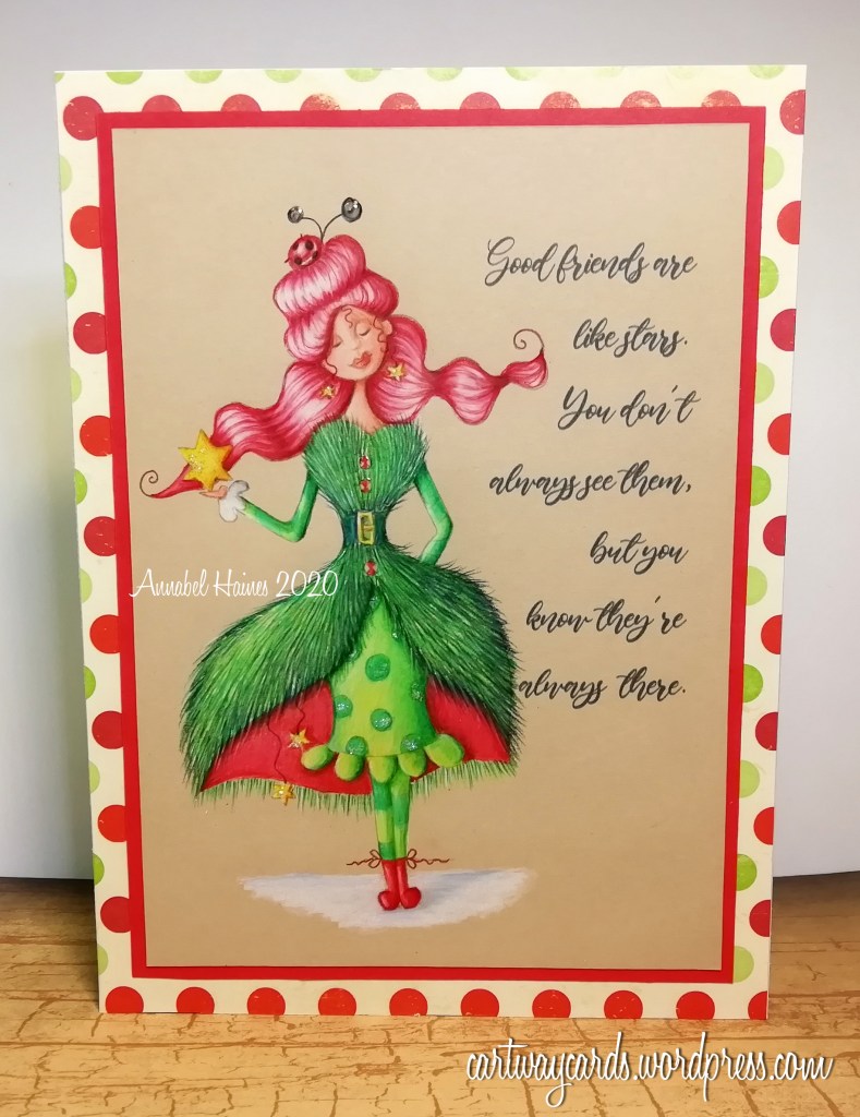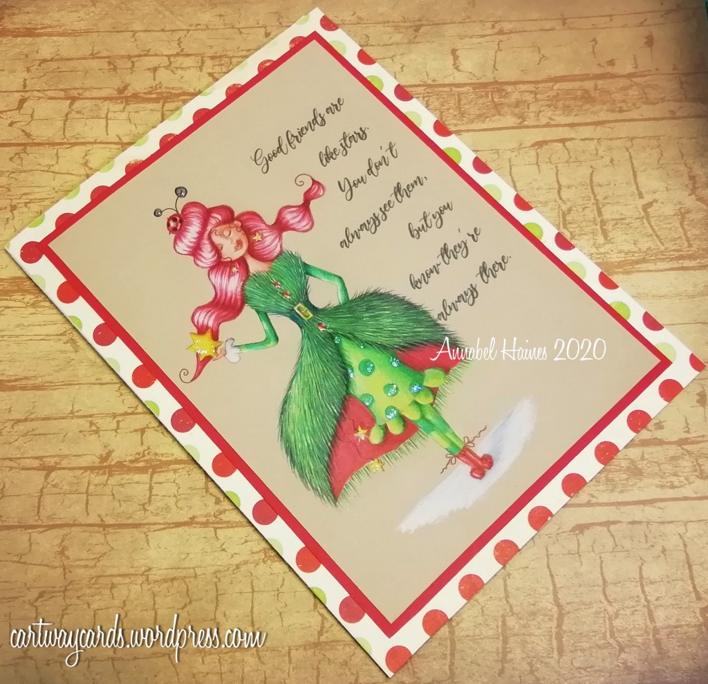 Here is my card with Arctic Sparkle, I confess I didn’t know she was called Arctic Sparkle or I probably wouldn’t have based her on a fir tree! Or fur tree? 😉 lol