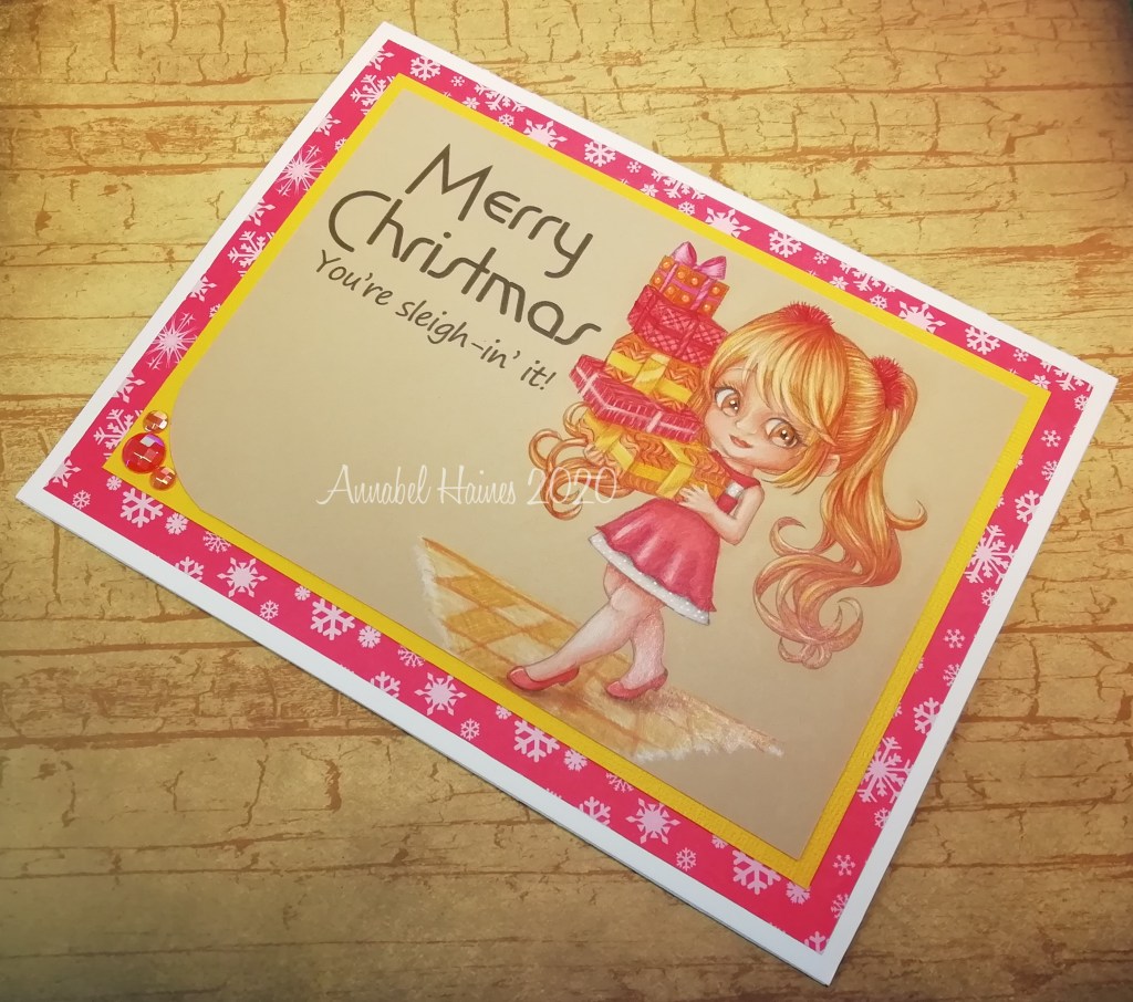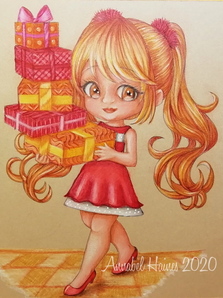 I coloured her with polyhromo pencils on kraft card! Here is what she looked like before I coloured her –