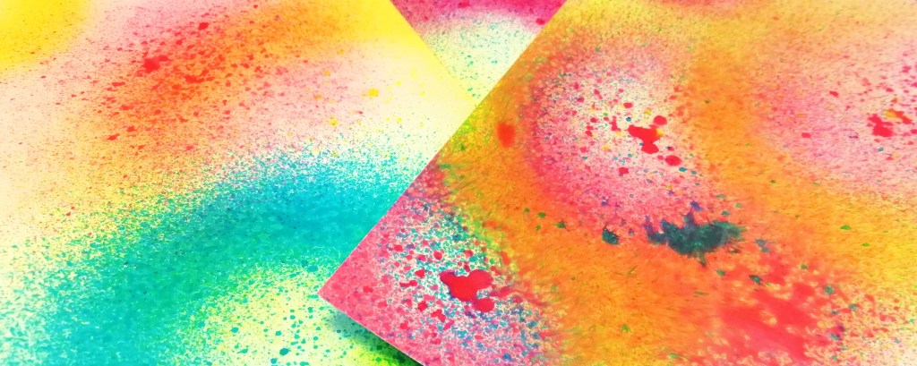 It doesn’t work with all photo papers (I have tried a few!) but if you spray them onto Canon PP201 glossy card allow them to try slightly so they look opaque, you can then polish off the top layer leaving gorgeous bright shiny colours underneath! (Pickled Raspberry, Mermaid Lagoon and Dried Marigold)