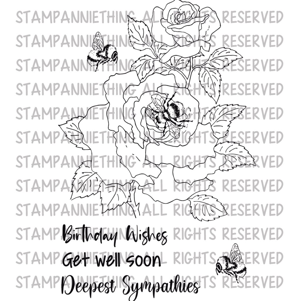 Hi Everyone! This is the support post for my Sets The Tone Session in the Stamp Anniething Stampers Facebook group today! I am going to be looking at some handy tips and ideas for colouring flowers, using the beautiful rose from the “Bumble Bee and Roses” Stamp Set, drawn by Ron Kropf for the Annie’s Garden Collection.