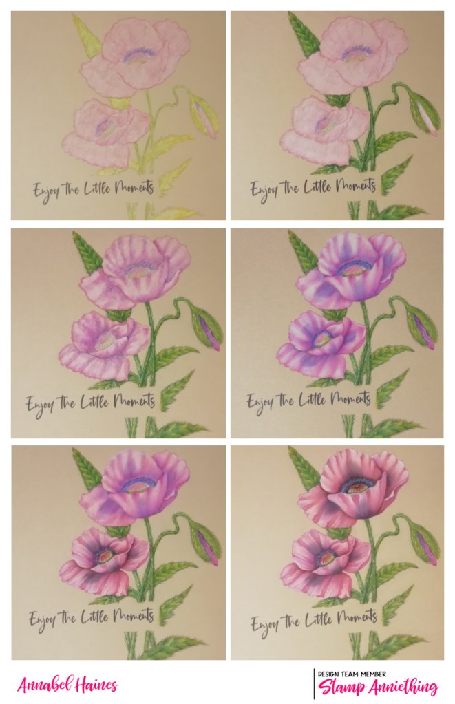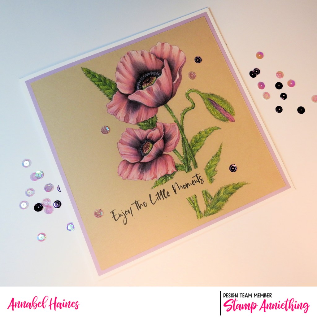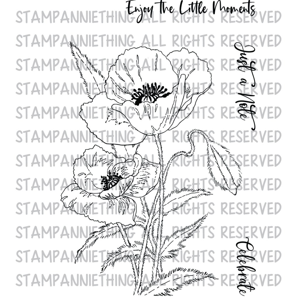 Hello! Back with some flowery work from the second stage of the Annie’s Garden Collection (by artist Ron Kropf) from Stamp Anniething. I took my time with this “Poppy“, and modelled it on Patty’s Plum, one of my favourite kinds of poppy.