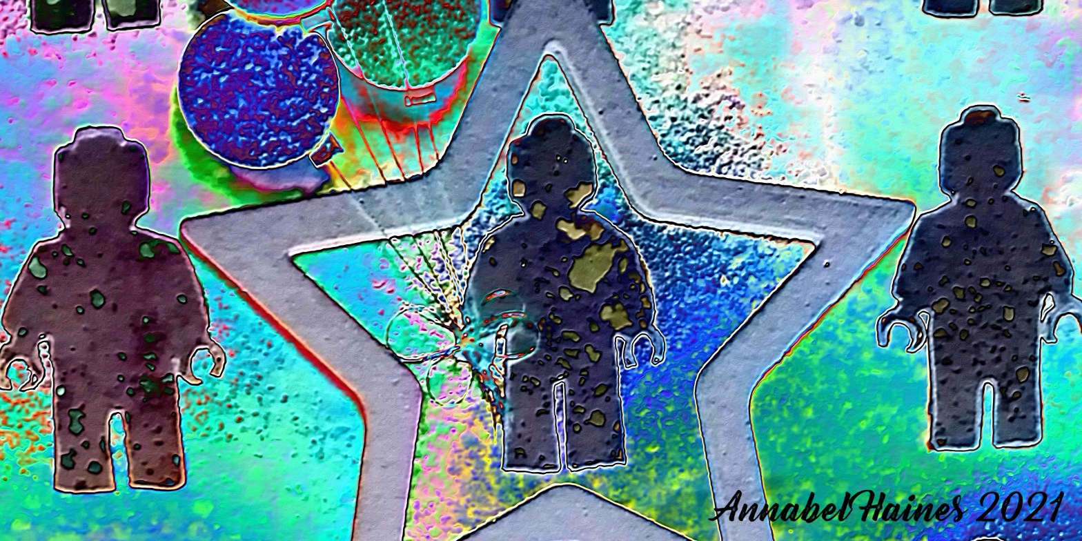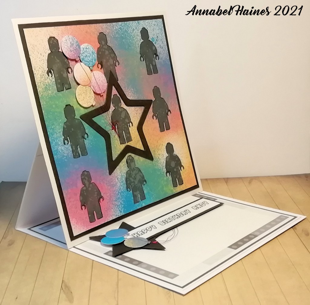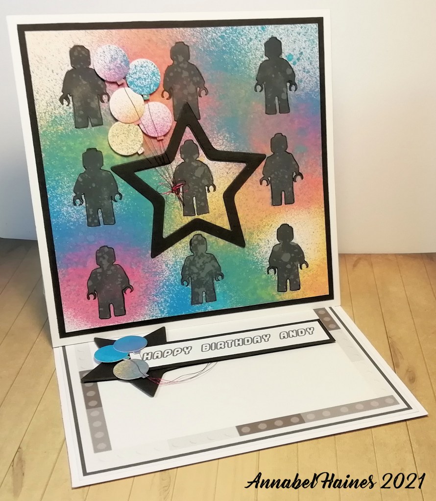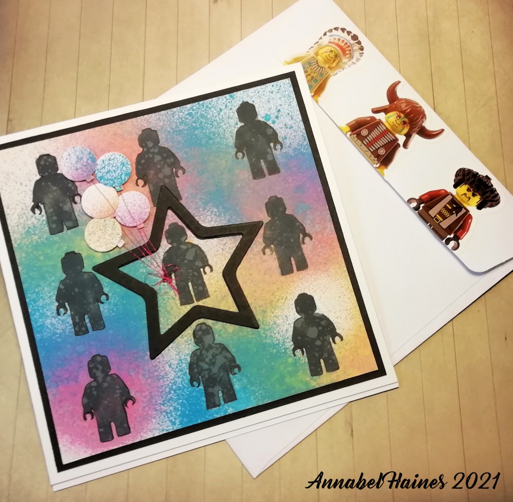 I used spray oxide inks for the background and then used my homemade lego stencil to add the little men.