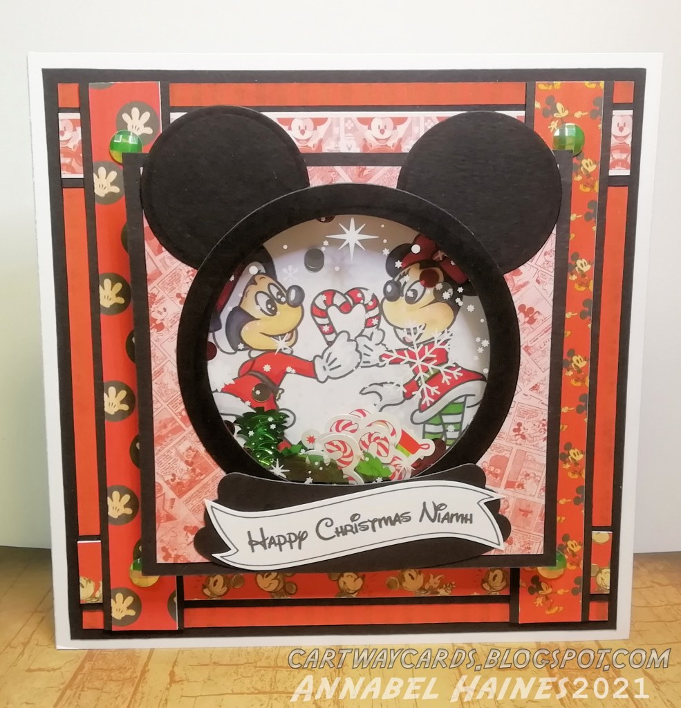 All things Disney can only be used for personal use and not reselling. The main images are hand-drawn from scratch and the papers were purchased from an online Etsy Shop. Bit of a disclaimer to start with, just in case! I had real fun making these two Disney shaker cards, one Nightmare Before Xmas themed, the other was a Minnie and Mickey theme!
