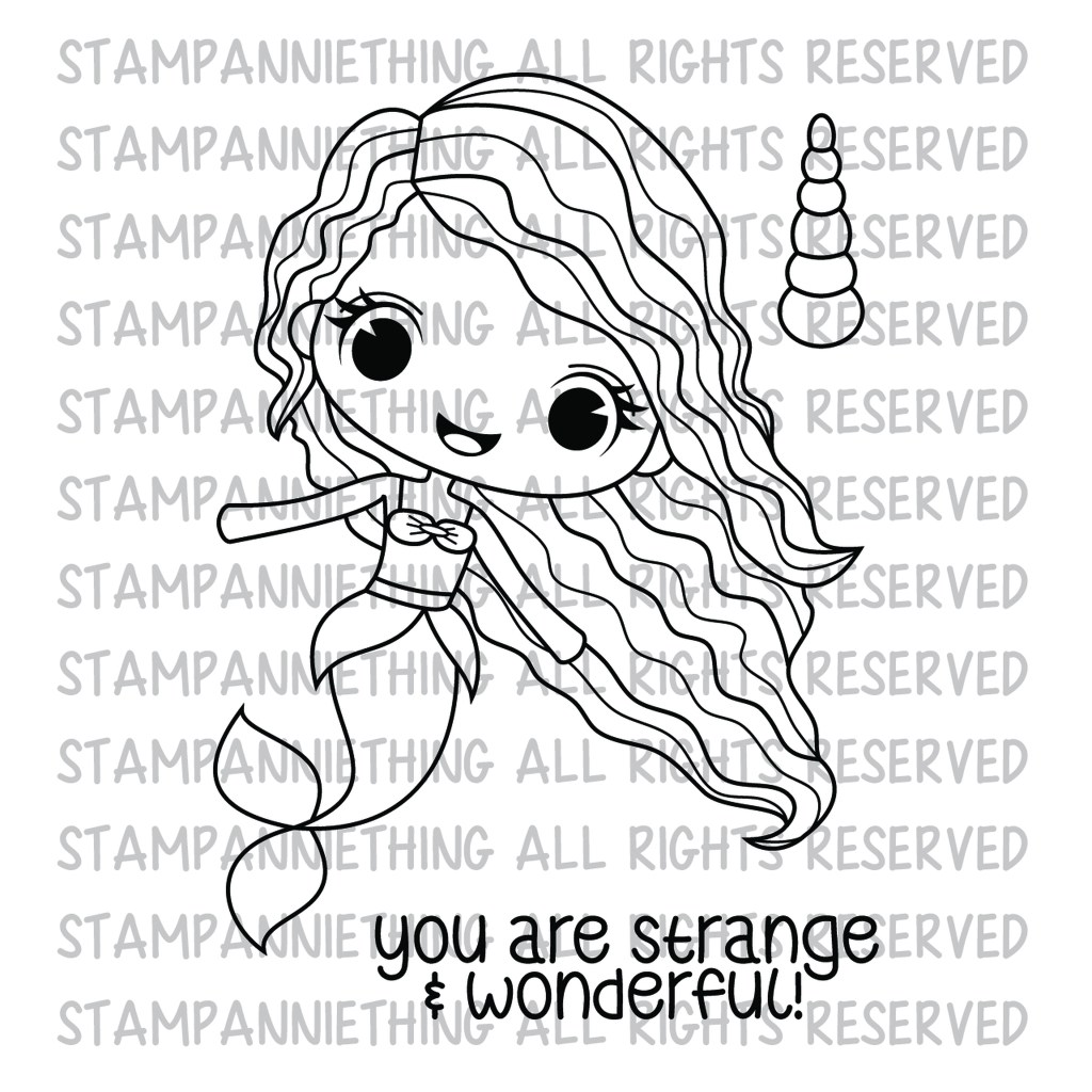 Calliope is also coloured with polychromo pencils on kraft card. I added some spots of white posca pen to her and my background. The sentiment also comes with her. This is what the stamp set looks like –