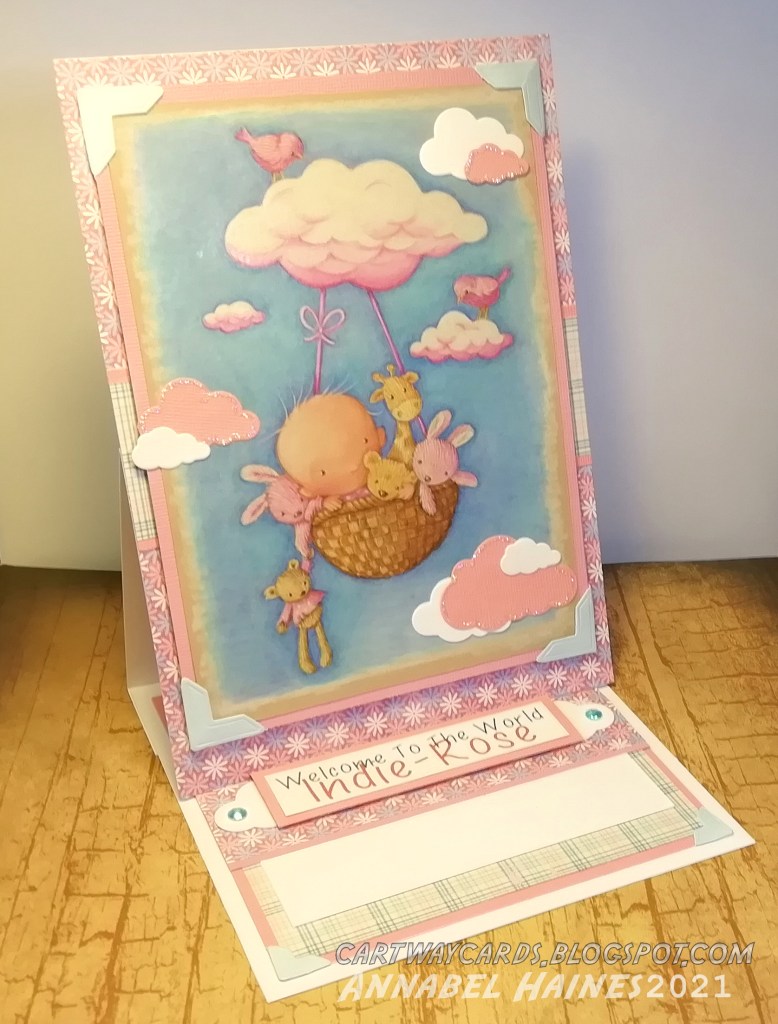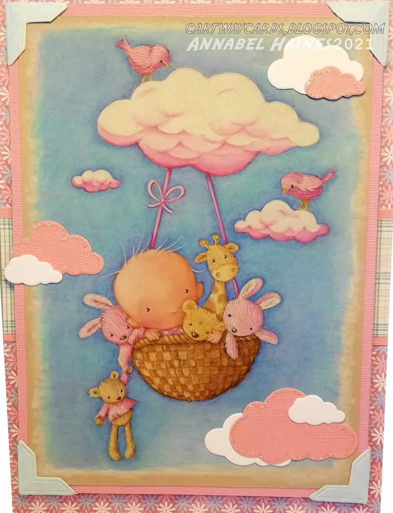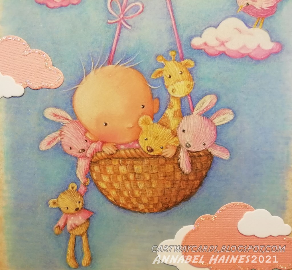 I have a fair few baby related cards I haven’t got round to blogging. Often they feature a Lili of the Valley image, still my “go-to” digistamp brand for baby cards. They are really lovely to colour. I hadn’t coloured up “Clouds” before, because I correctly imagined that it would take a looooooonnnnnng time for me to colour. I wanted to do it justice tbh, a shoddy job just wouldn’t do. So when I had in a commission for a very special new baby card I decided to colour it up. Slowly! lol.