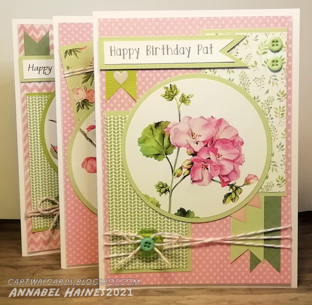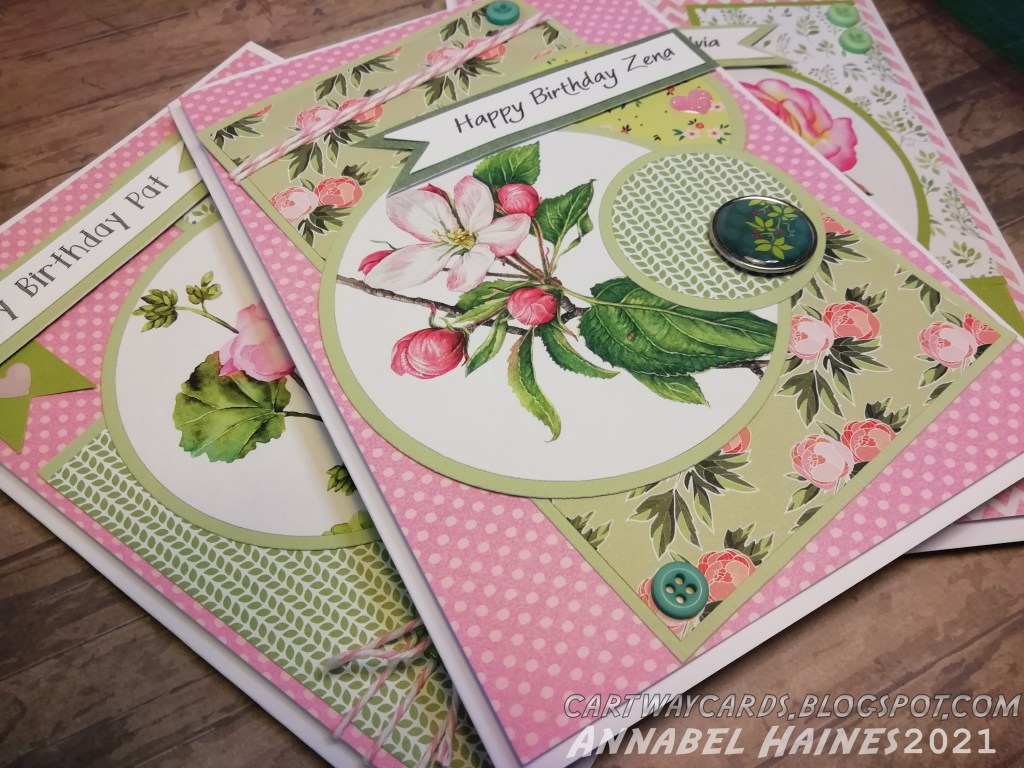 Back on the marathon card catch-up! I made this set of flowery cards using a free set from Making Cards Magazine, and maybe some elements from previous sets from them that matched well.