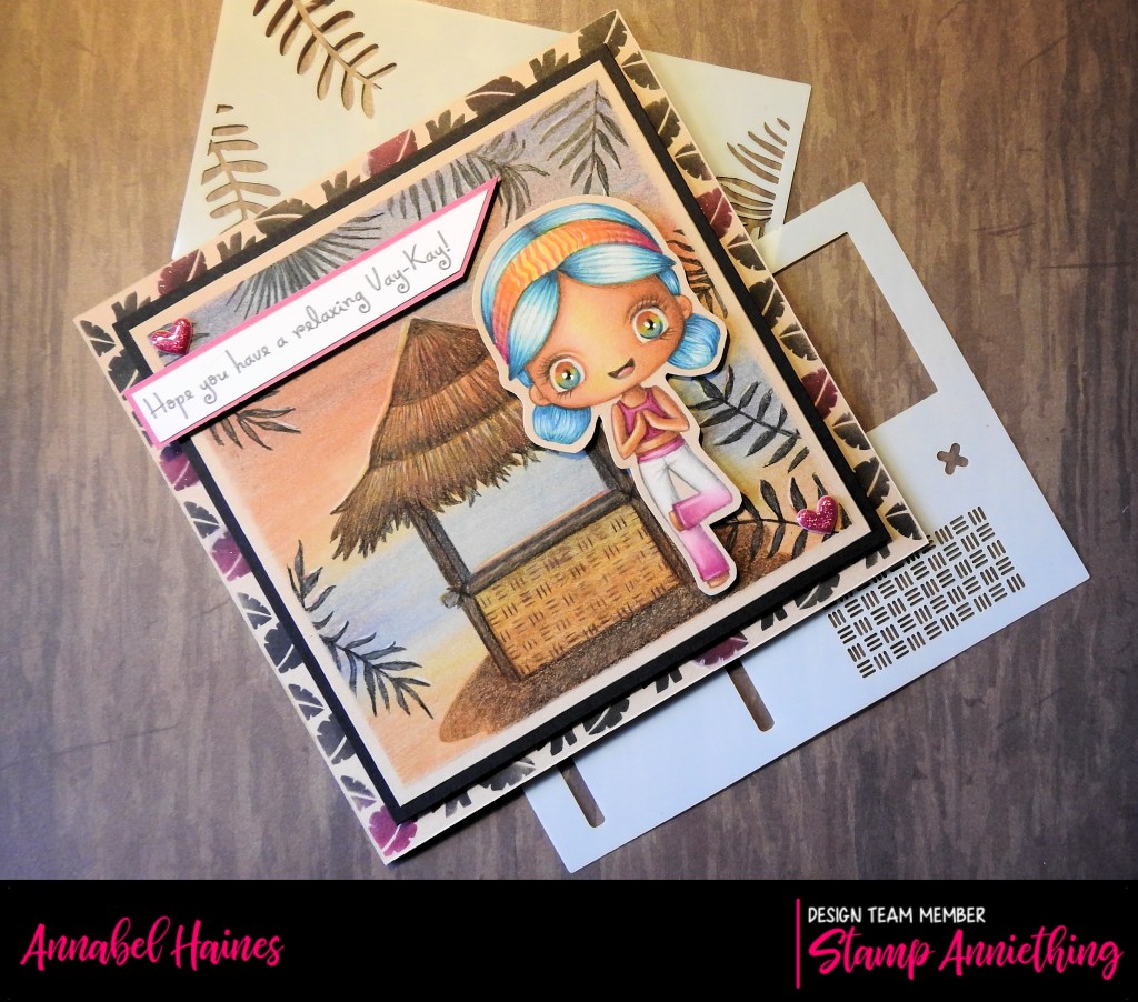 I also decided to pair it up with the Namaste digistamp, I wanted a spa tropical retreat kind of vibe for a “Vay-Kay” card. Here she is in the shop –