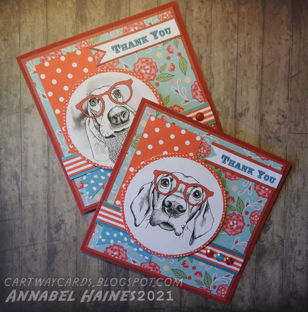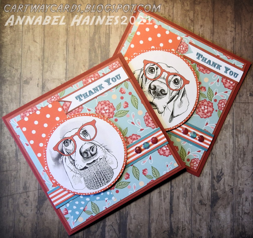 On a similar thread to yesterday’s post, I went back to my Making Cards Magazine Freebie papers and pulled out some bits to make a pair of dog themed thank you cards too!