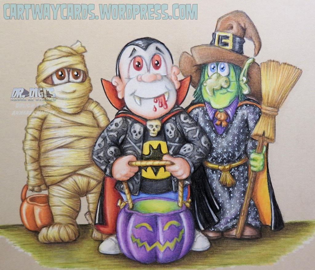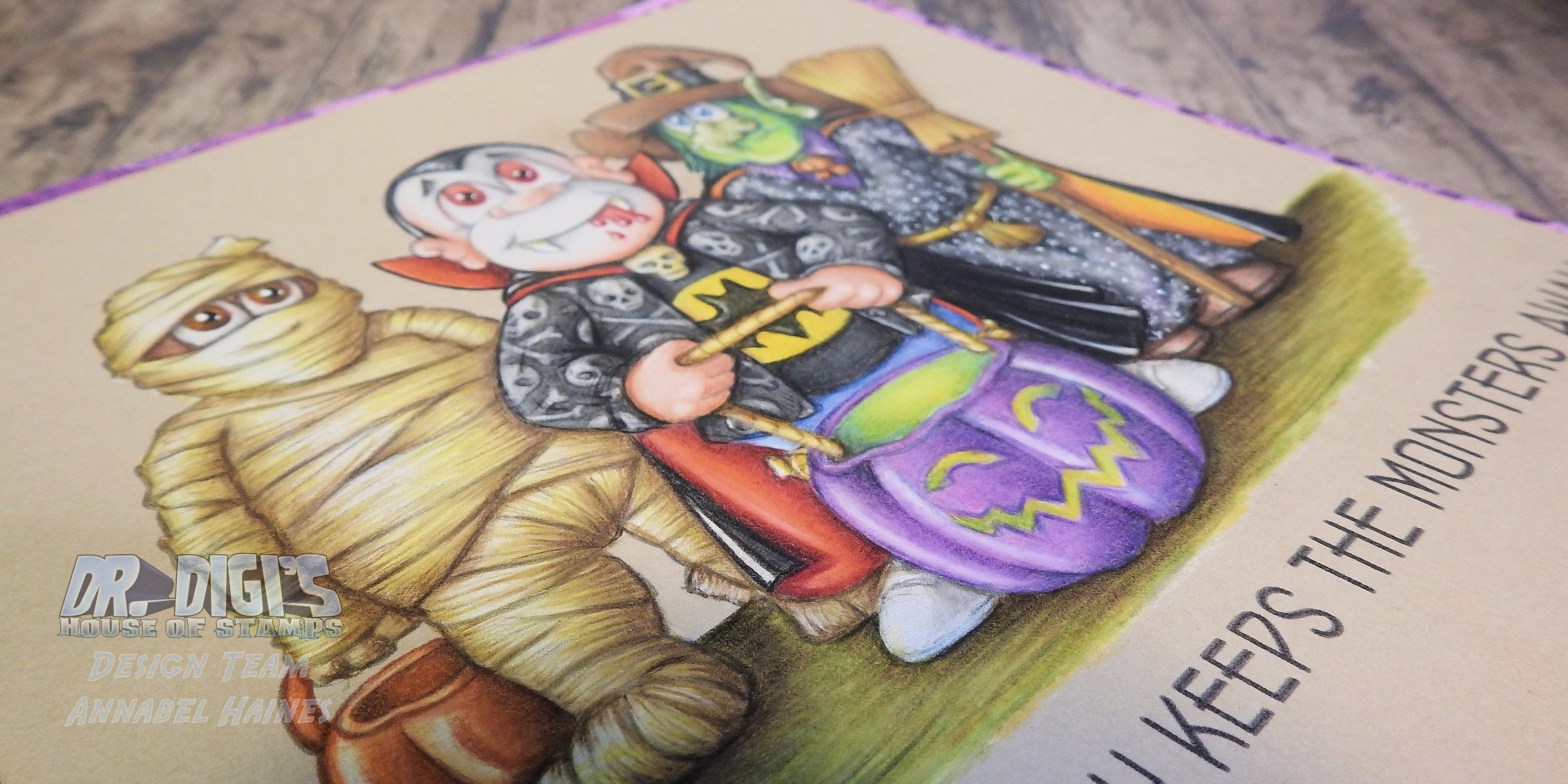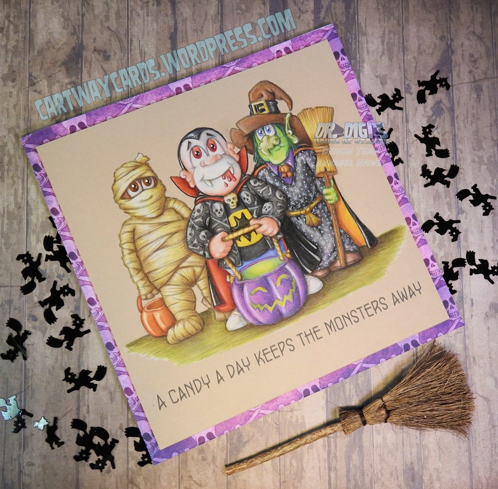 Happy Dr.Digi FriYay! I am popping on the blog today to share a Halloween Card! I love how Halloween always leads to extra creepy inspo and bright clashing colours! This is the digistamp “Trick Or Treat” from Dr.Digi’s House of Stamps, one of my Halloween favs!
