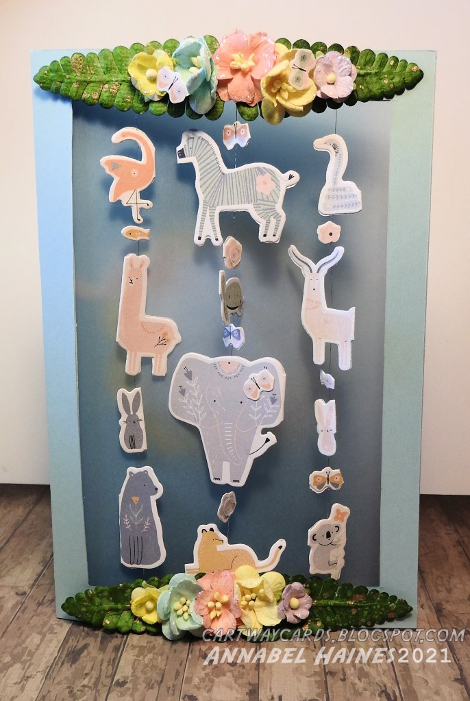 I think these are called spinner cards? The animals are two sided and spin round. I actually found a super cute paper mobile kit (from Papermania) and decided it would make a different kind of card. When you make a lot of cards for the same family you have to think about fresh ideas! Not made one of these before for certain!