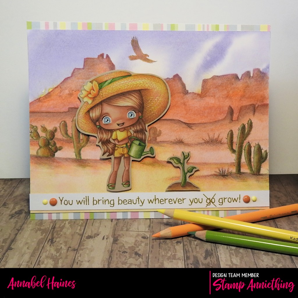 I had to crop my background a fair bit for the final card but I think I included all the important bits for making a nice backdrop for the digi! I wanted a sentiment to use for a New Home card so picked this one to go with my watering in the desert theme, lol. Sentiment is in Candy Buzz BTN font