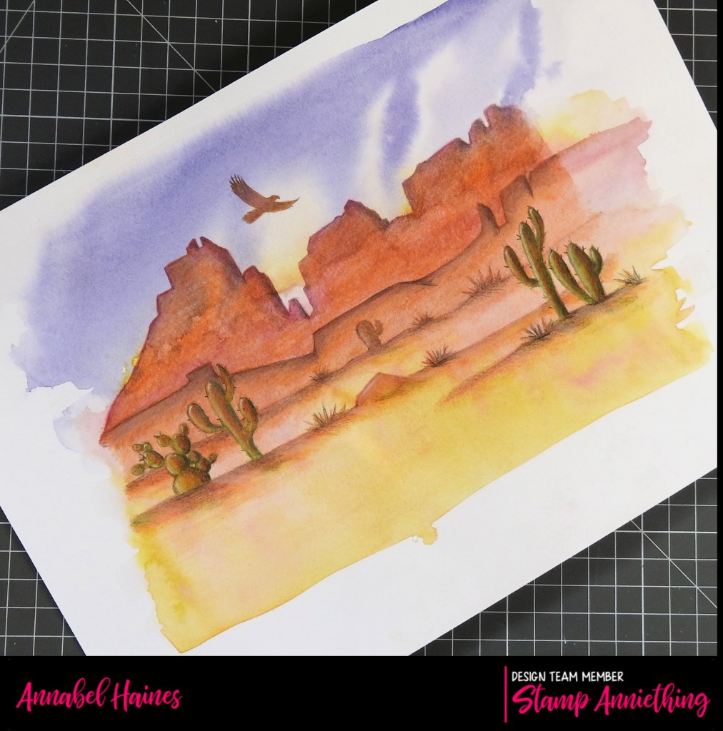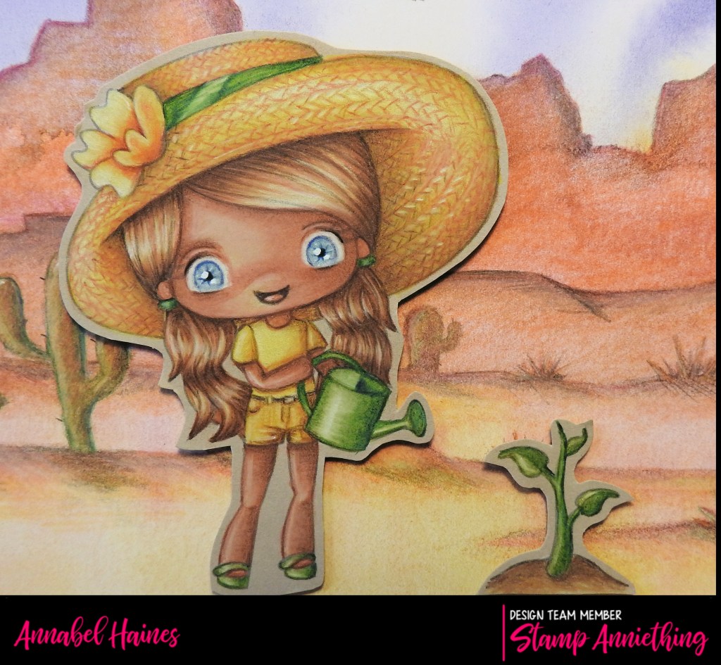 Good Monday Stamp Anniething Morning to you! I am back with my slightly-weird-obsession, pencil and stencil! I really liked the Desert 2 Stencil Builder and really loved the “Wet My Plants” digi and thought they would make an interesting combo?! What do you reckon?