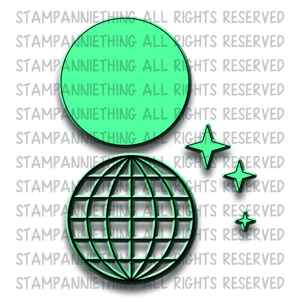 I confess, this took me a while to colour with my polychromo pencils, tho very thankfully the disco floor was super easy with the new Disco Stencil, and the Disco Ball was a quick cut with the new Disco Ball Die! I used Stamp Anniething Hybrid Inks with the stencil in Shocking Pink, Tangerine, Freesia, Apple Green, Caribbean Sea.