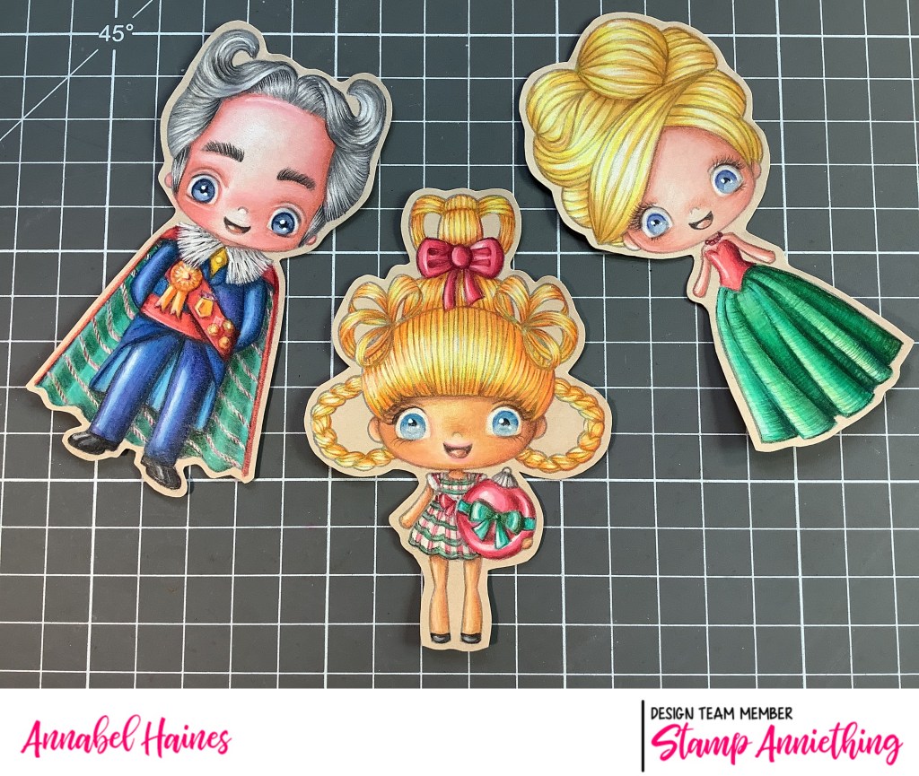 I picked Mayor Jeffery, Christine and Taylor to colour up! Here they are after I had coloured them up, before decoration or assembly!