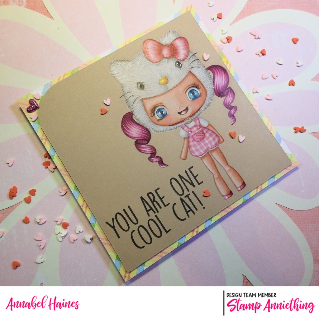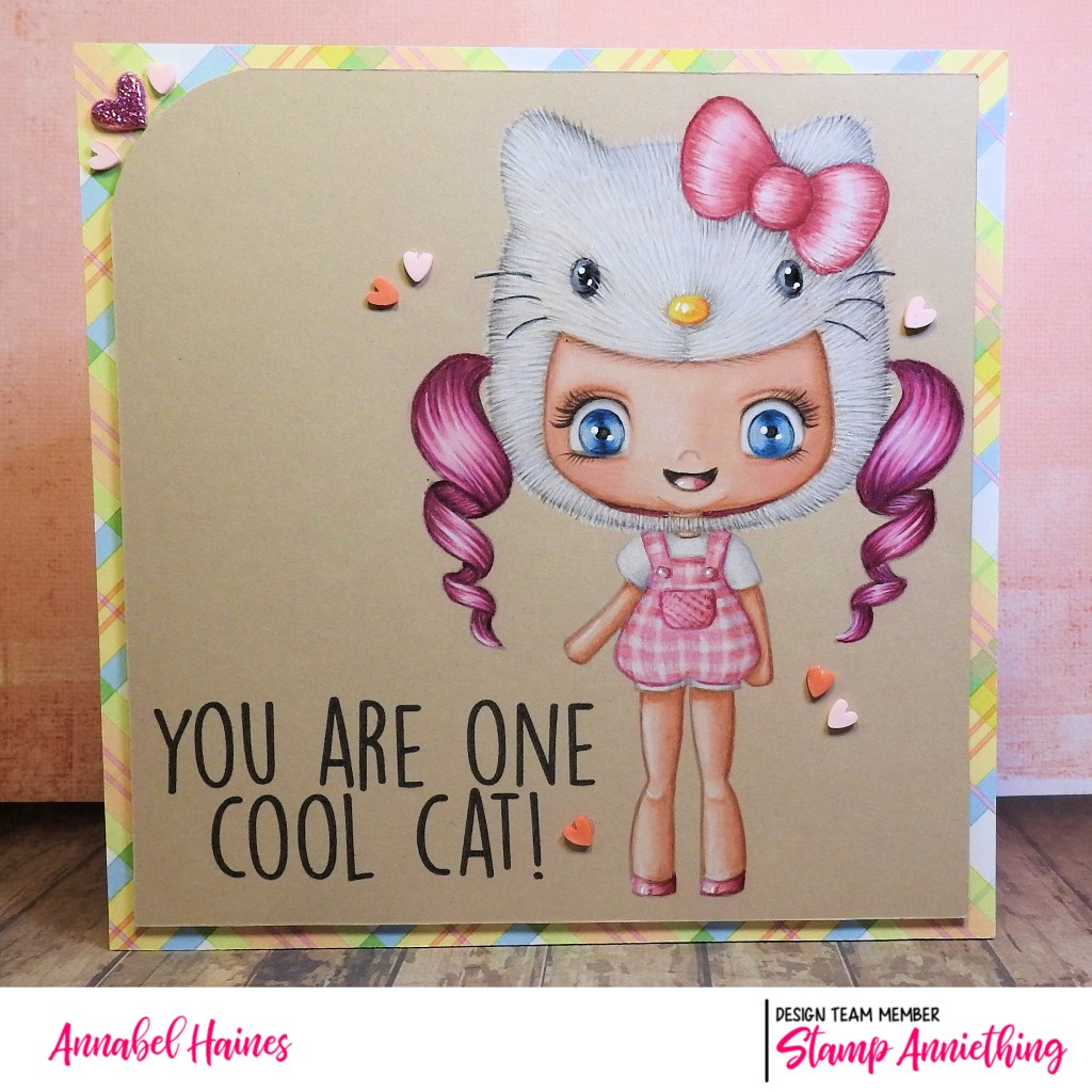 Thought this gorgeous Purrfect Valentines Kitty might make a pretty card for a very cool cat! I think she might be one of the first stamps I saw coloured on a live!