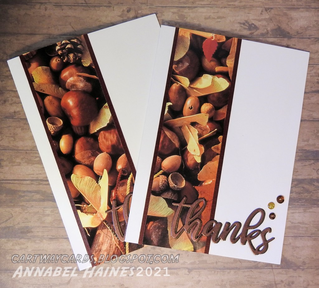 Just a quick post! My good friend Kay (in RL) passed me some junk journaling items and in that pack was a gorgeous photo of autumn leaves and nuts etc. I decided to use them in a simple upcycled thank you card, using the thanks die from Stamp Anniething.
