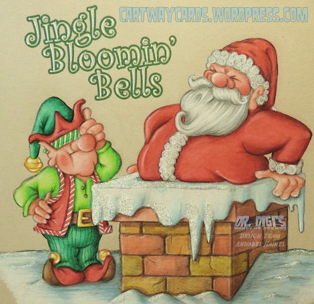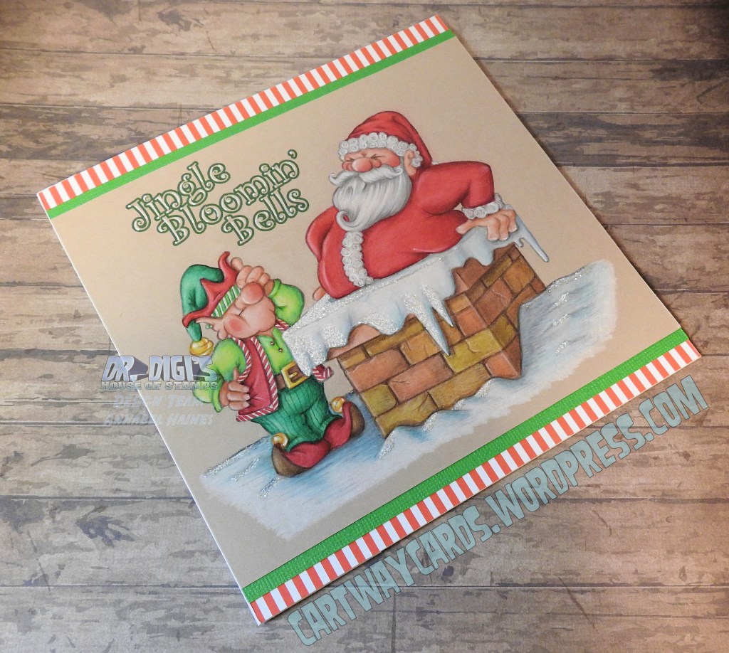 Okies, so I have started on my Christmas Cards in earnest and can guarantee Stuck Santa from Dr.Digi’s is awesome for a quick colour up! Just a one evening job for me, so that counts as speedy!