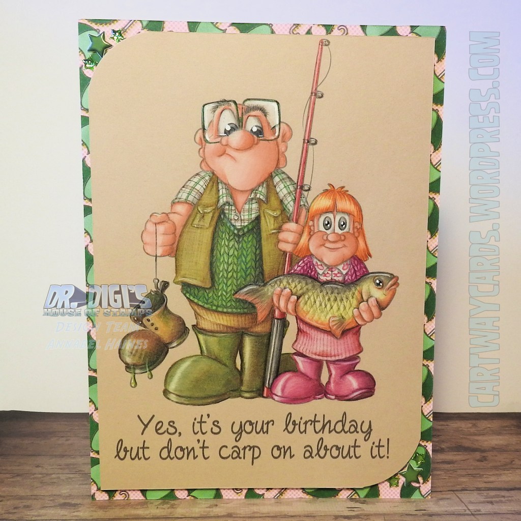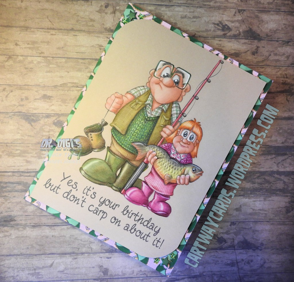 Fred and Fanny have had a marvellous day fishing, Franny caught a very large Carp but Fred caught a tough old boot 😀 Not for the first time! Time for another Dr.Digi’s DT day and I have used Fred and Fanny’s Fishing Fiasco Digistamp.