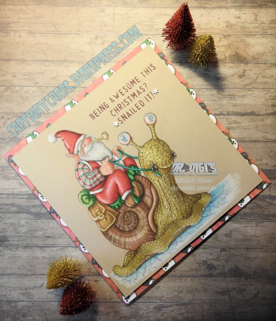 Feeling very festive today in a mollusc kind of way! It’s “Grumblebonce Rides Again“, a new digistamp from Dr.Digi’s House of Stamps and it’s my DT post! 😀 Here he is! He doesn’t have to be A Santa version, I just thought it might be a chuckle.