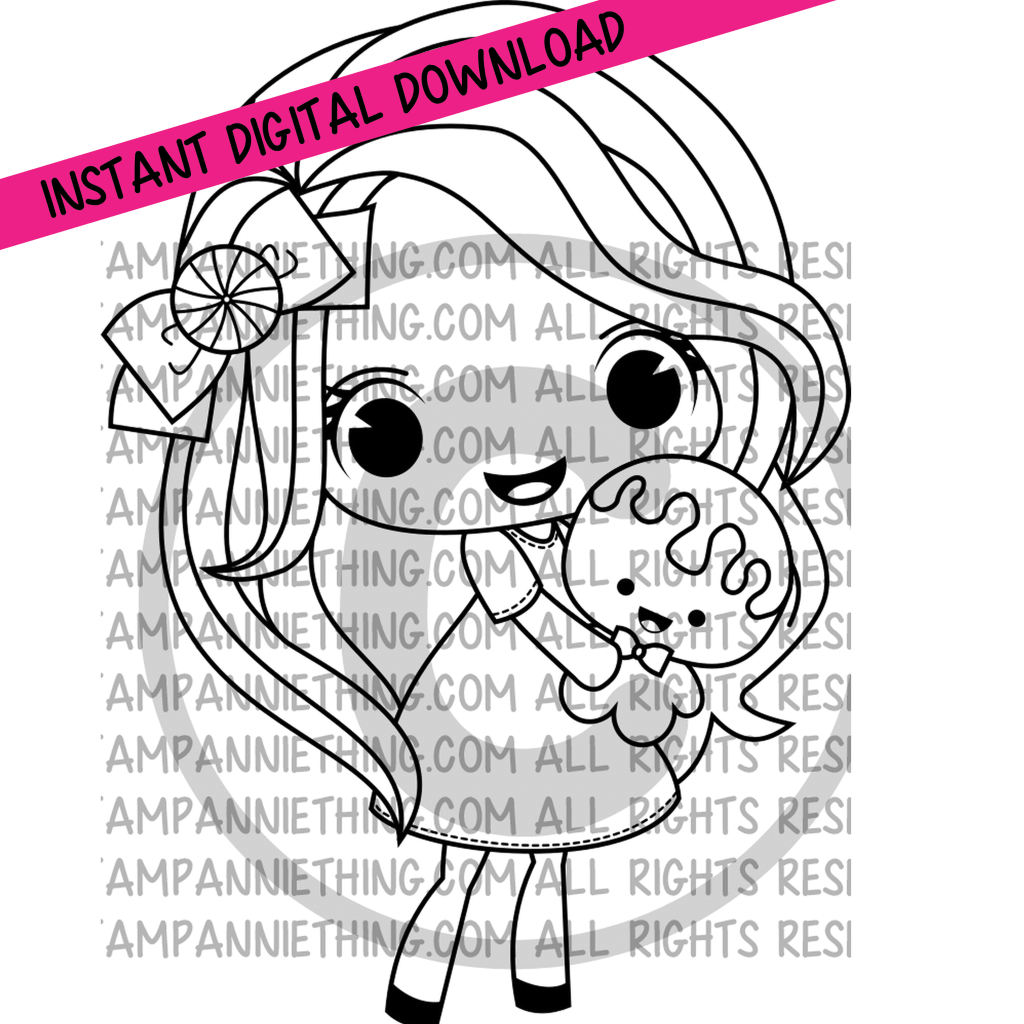 You might think it’s too late for Christmas cards, why is she still posting them?? Well I might have made her a Christmas card this time, but I did do a little experiment on how you could alter the gingerbread man (easy if you print pale for no-line colouring) and turn her into a super chibi for any occassion. So below – Dolly version, lol!