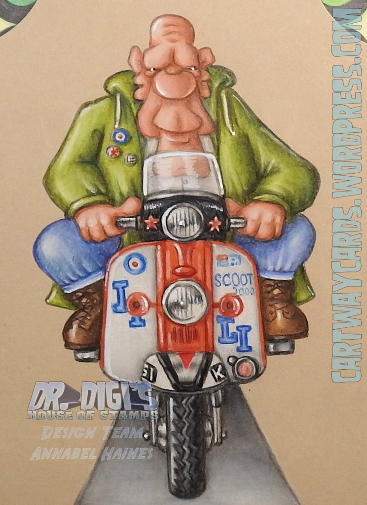 Popping in with Melvin the Mod this morning on this fine Dr.Digi’s DT Friday! This was actually a quick colour, cos it only took me one evening and I didn’t start very early, lol! If I hadn’t have gone film nerd with the references on his moped it would have been much faster, but I couldn’t resist.