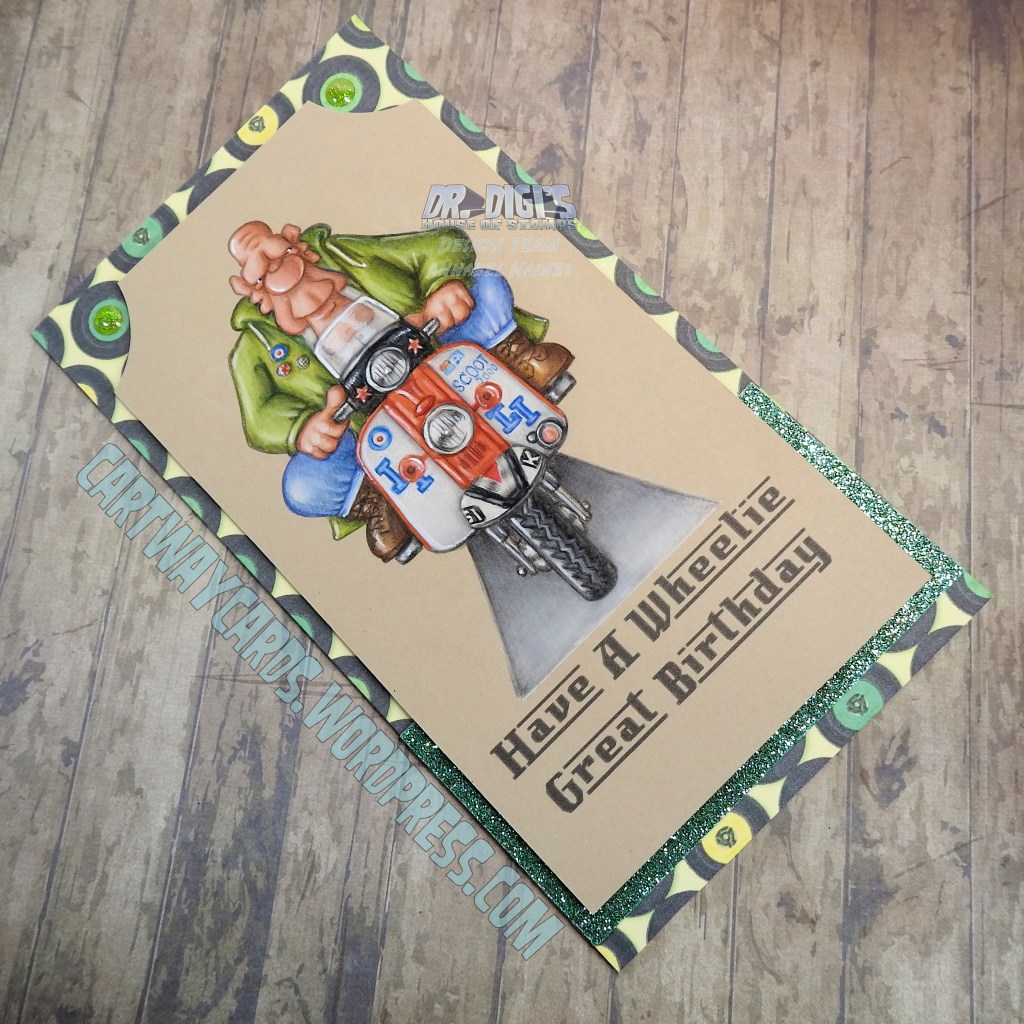 He was actually a quick colour, and easy to make into a tall skinny card, I could have easily used a narrower base for him, but only have DL envelopes atm, lol! See you for another Dr.Digi Friday soon!….. on a friday 😉