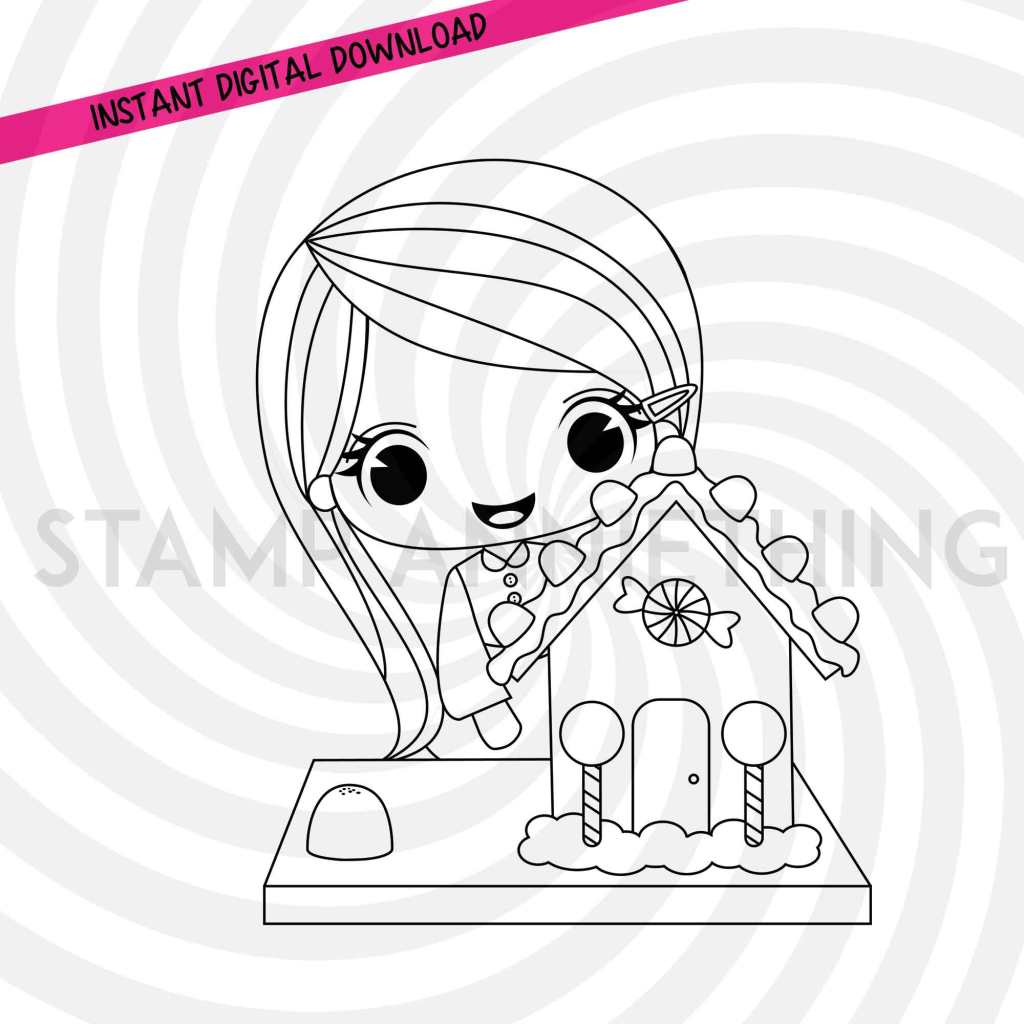 This is a pretty big card, 7 inch square, and I love colouring at this size so I can add in endless details! I really wanted to add texture to the house an sweeties and at this scale I really enjoyed it!