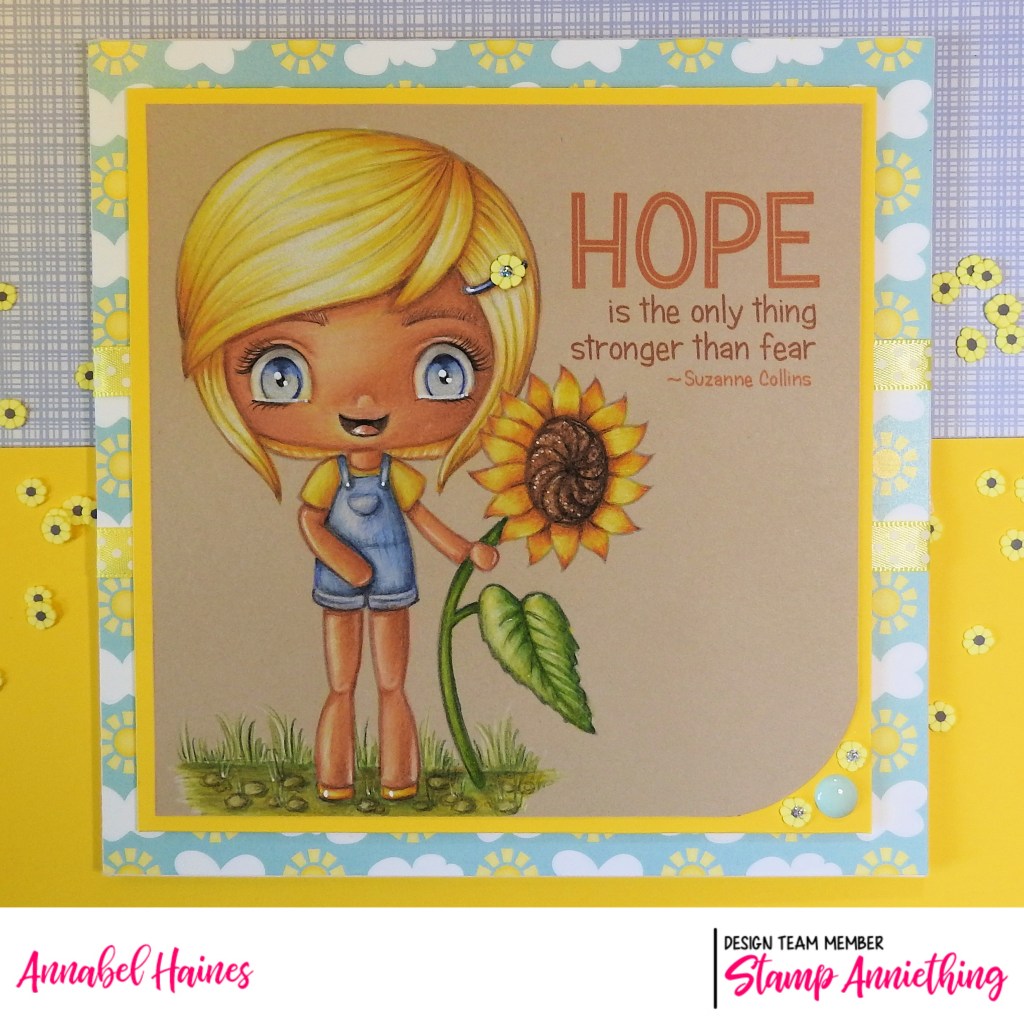 It’s great to be able to do something to help my fellow humans, even a tiny bit, so was very happy to colour up Molly and share a message of hope and support. Major props to all my friends who are doing the same or even better! Thanks to Stamp Anniething for making it possible to craft my support!