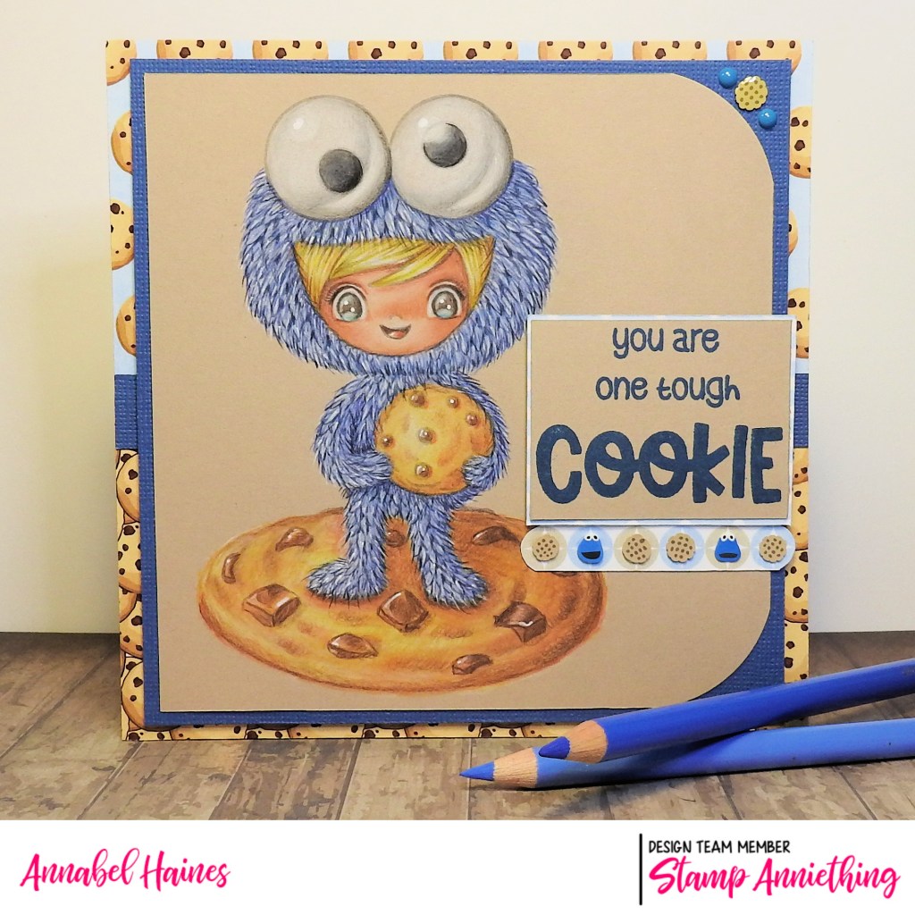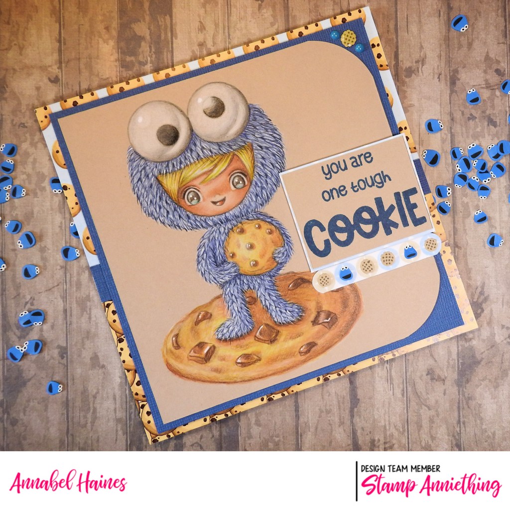 I thought he needed something to stand on, so I went for a giant cookie lol! All the things I used to make this card are in the pack you get with the cookie course, so I made this using the stamps and my left over pieces of kit!