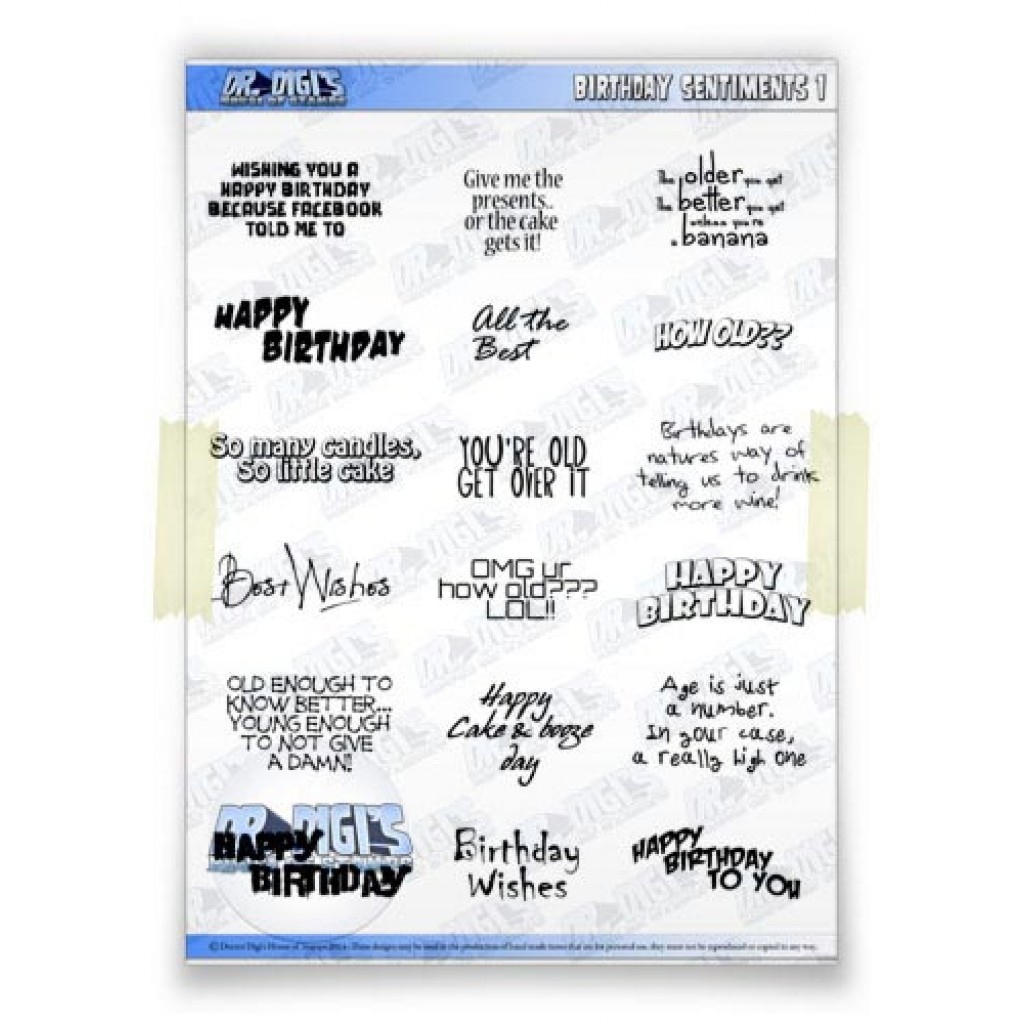 I also combo’d two sentiments from the Birthday Sentiments and Funny Sentiments (2) sets, also from Dr. Digi’s.