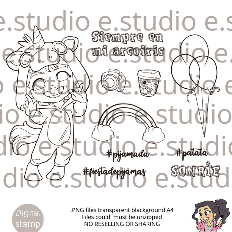 And if you can’t go unicorn, go rainbow! or both! And ‘jamas! So many wins. Love this Freda Unicornio set from Elvi Studio! Instantly made me smile and know I wanted to combo some elements and make a card!