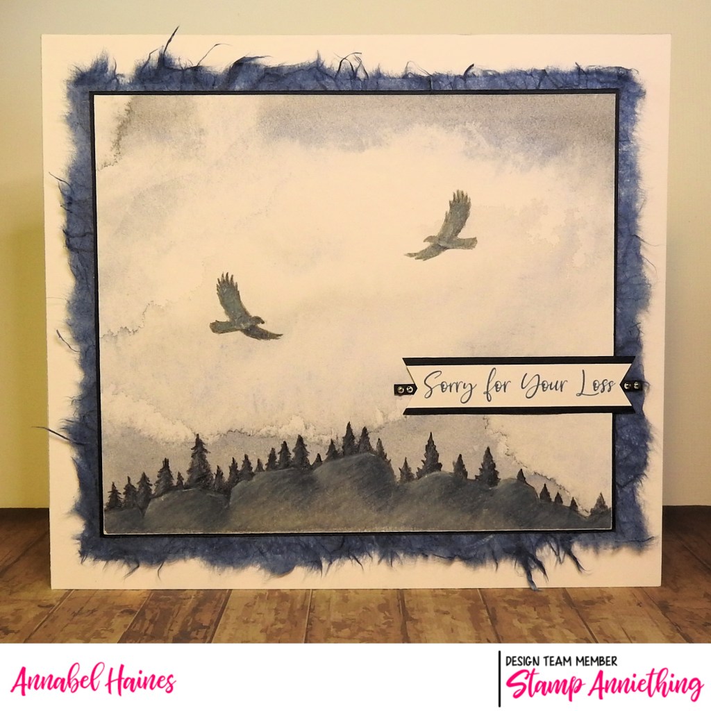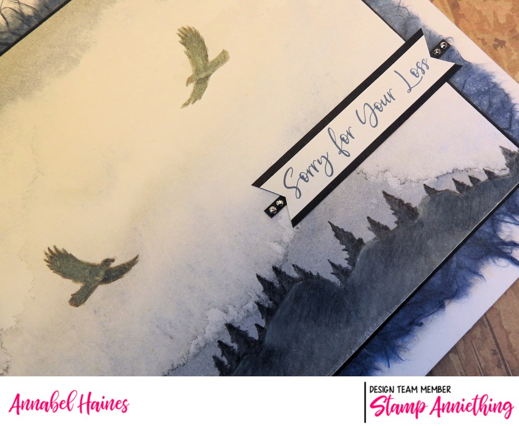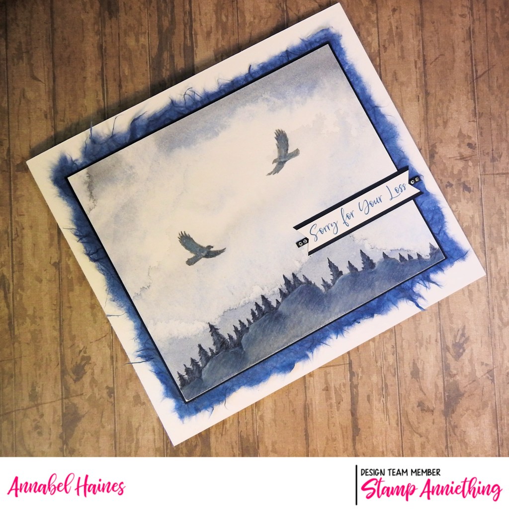 I’ve been messing around with my Stamp Anniething stencils and some watercolour backgrounds for quite a while, and whilst this one if a bit sombre I kinda like how it came out so made it up into a sympathy card.