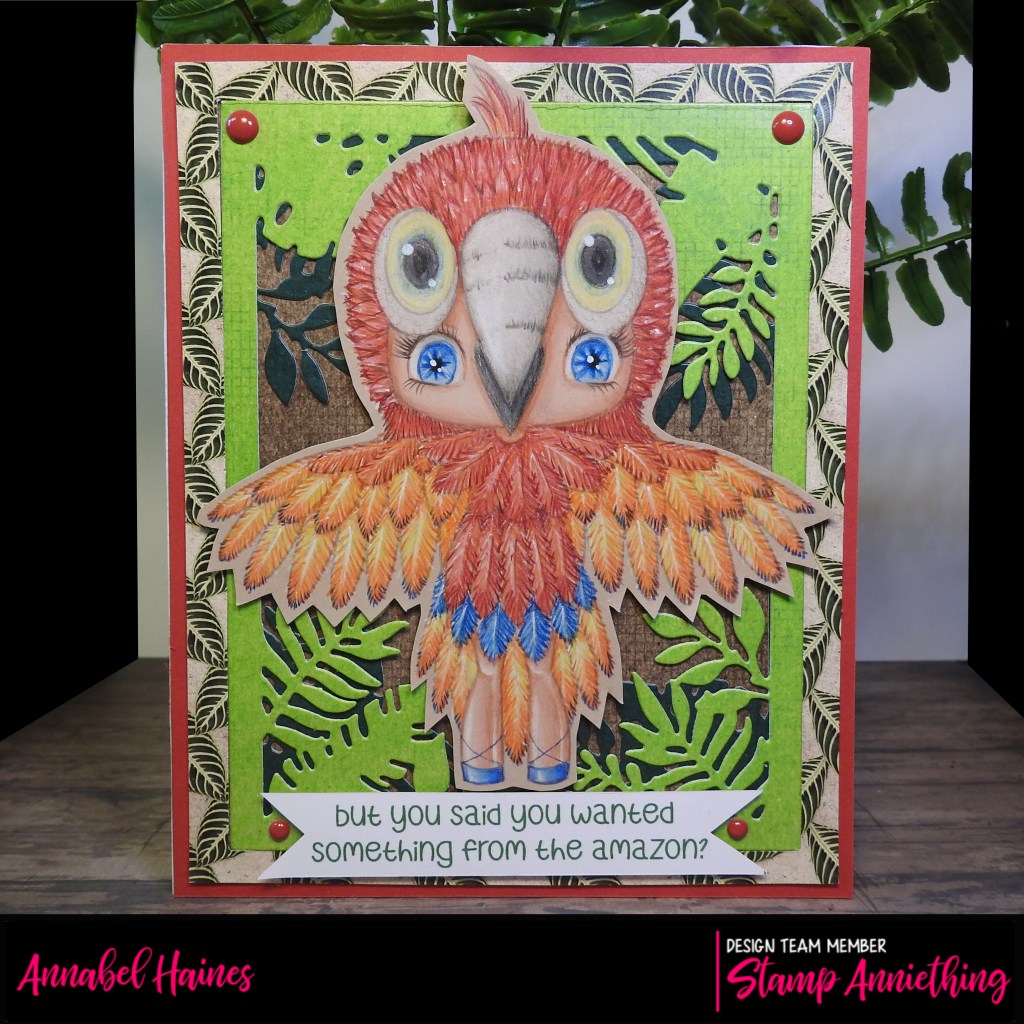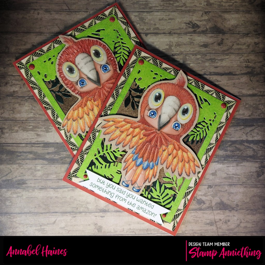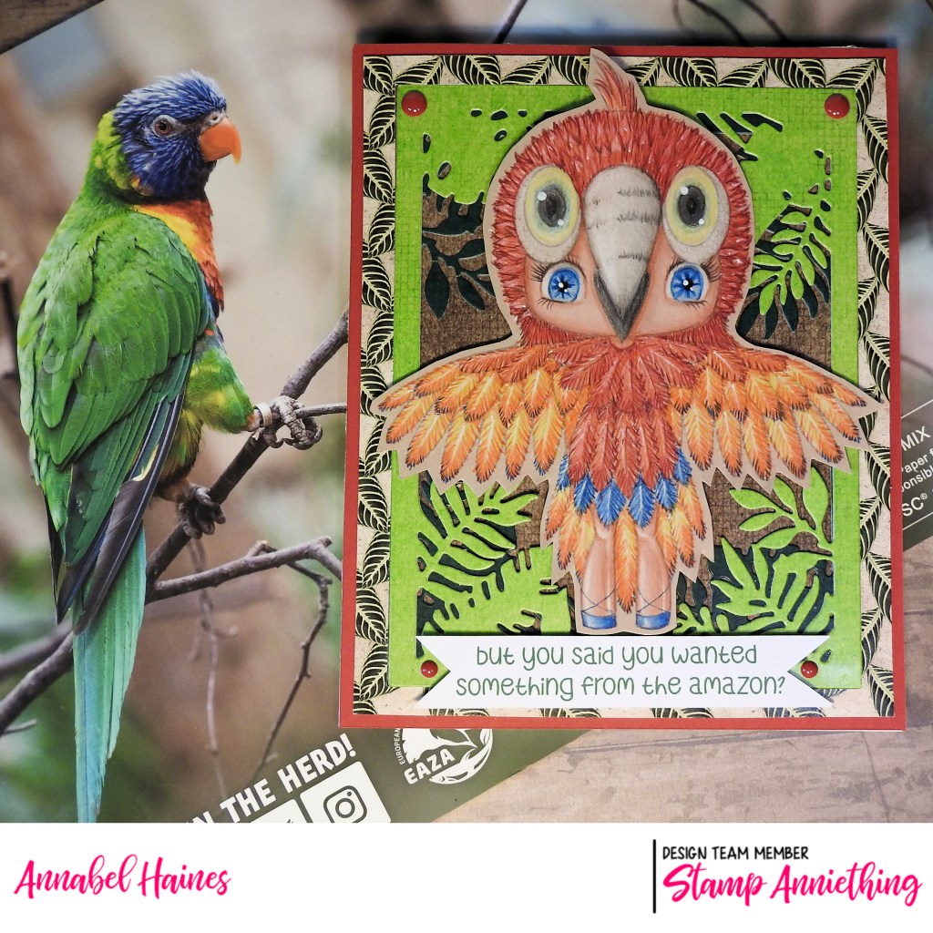I really love working with the Let’s Get Wild 6×6 Paper Pad too, it was perfect for our Macaw! I used the foliage card mat die, but it would be easy to achieve the same effect using rectangle dies and leaf dies, it’s just green background foliage for her to sit on! Remember you get a discount code for the items I used when you sign up for the course!