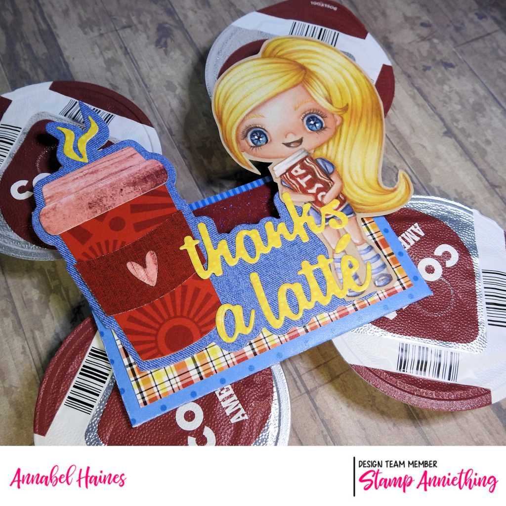 So all the background pieces are very simply and quickly made using two die sets, both from Stamp Anniething, the Gift Card Base Builder and the Latte Add-On. Handily there is a video here that you can watch where Annie shows us how to use the dies! It was very useful to me!