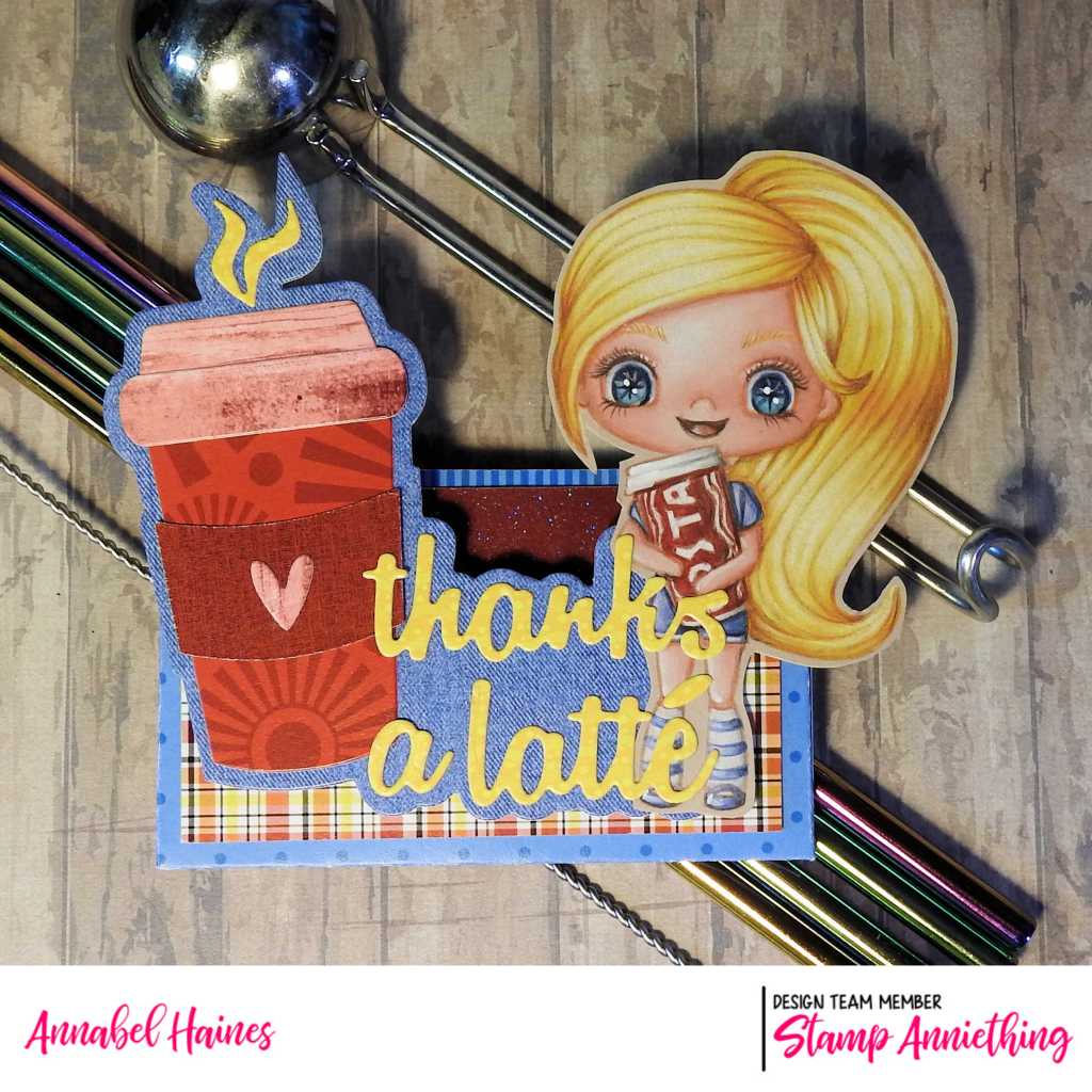 New project for Stamp Anniething today! And I made a little gift card holder for a coffee gift card using Gracie How You Bean Stamp and the Thanks a Latte add-on die for the Gift Card Base Builder!