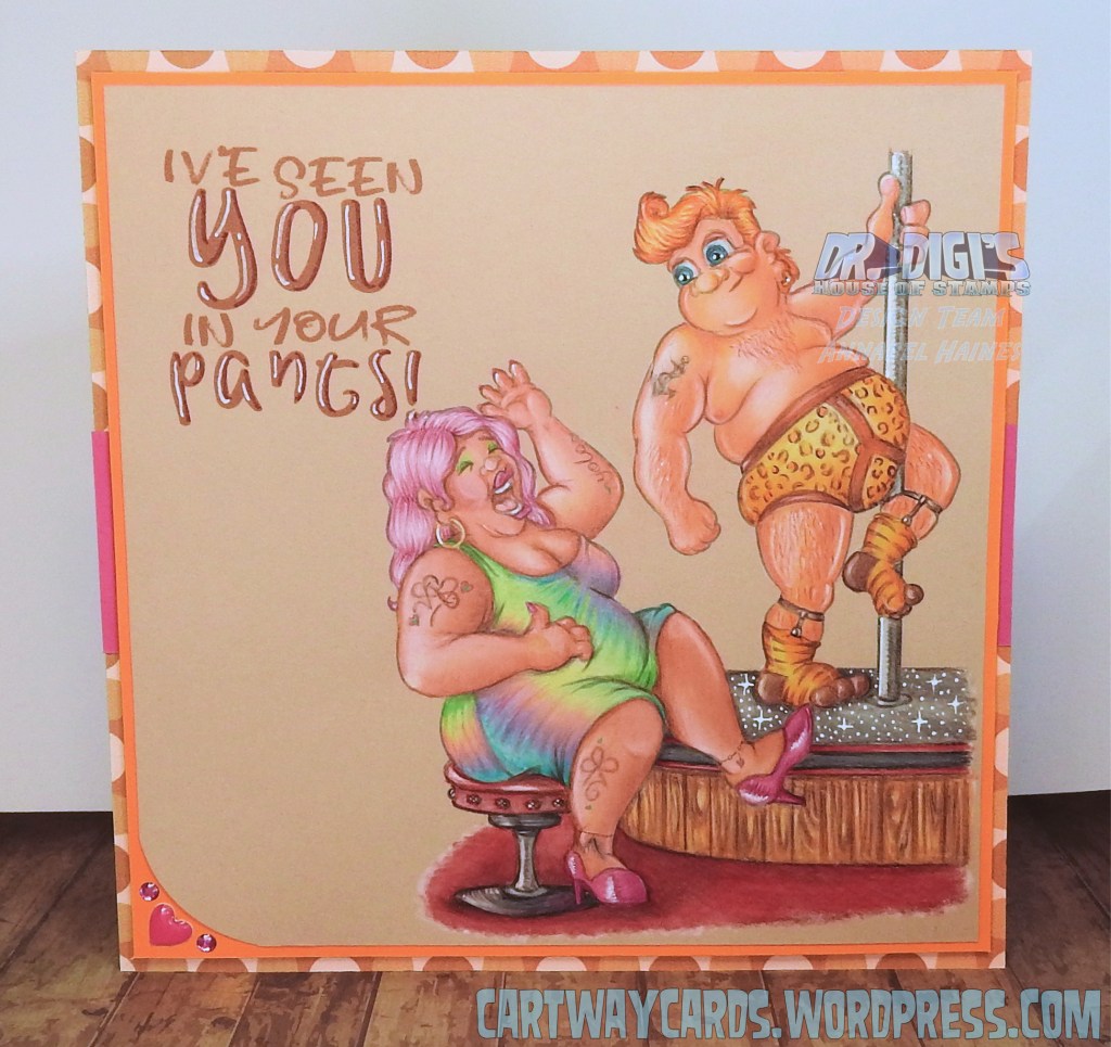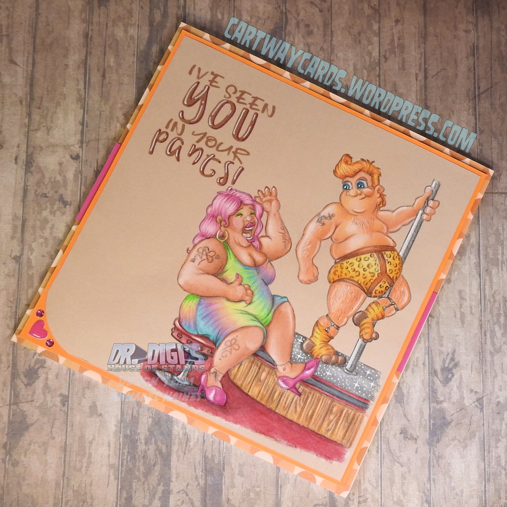I also used a sentiment from the Saucy Sentiments Sheet! Don’t think I have ever used it before, in five years!! What a waste of very funny sentiments, will try and smuggle more in soon! 😀
