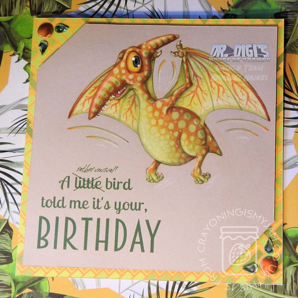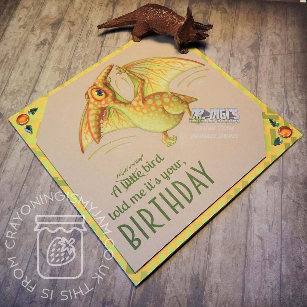 I am back with another Adorosaur! This is the new release Terry the Pterodactyl! He was super fun to colour, and I thought a great way to use my sentiment I previously used with Desmond the Dodo!