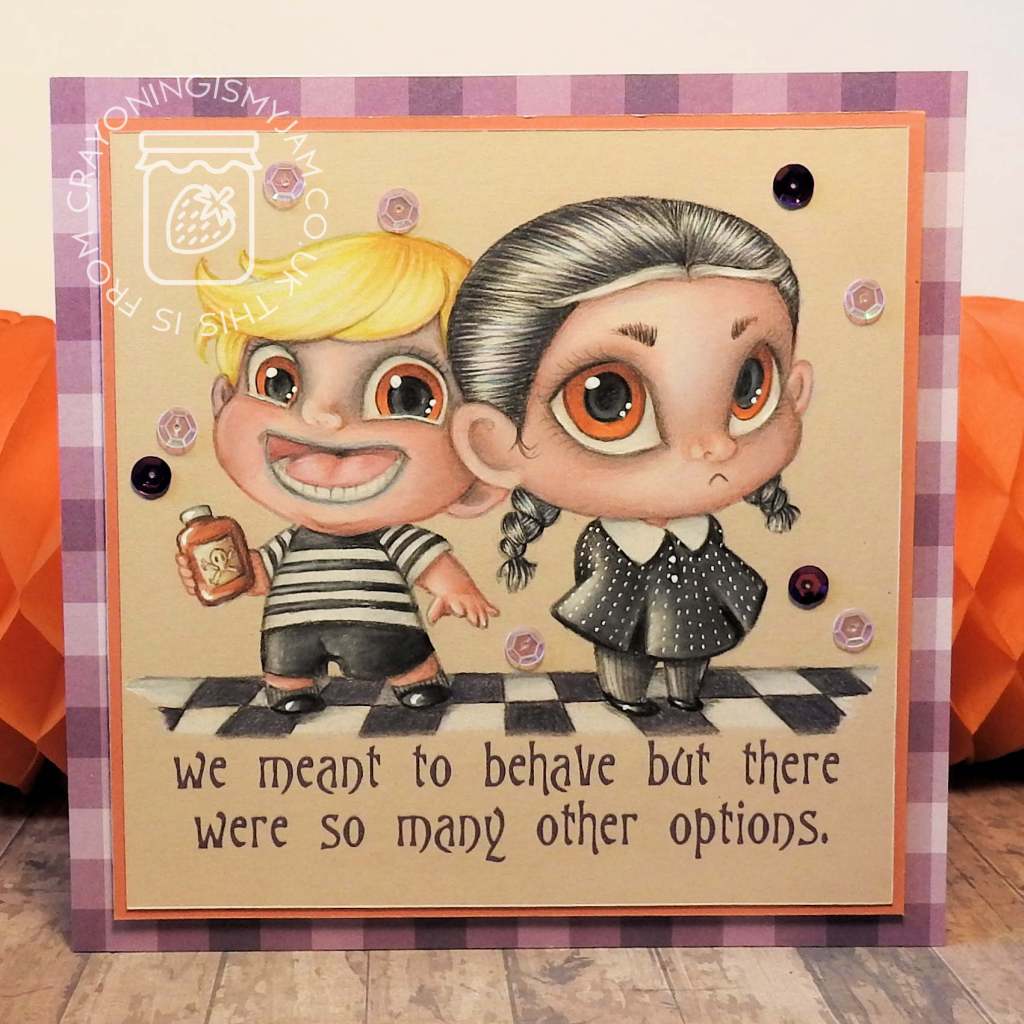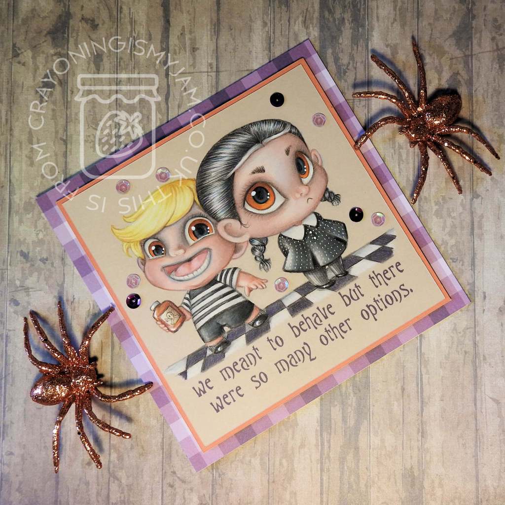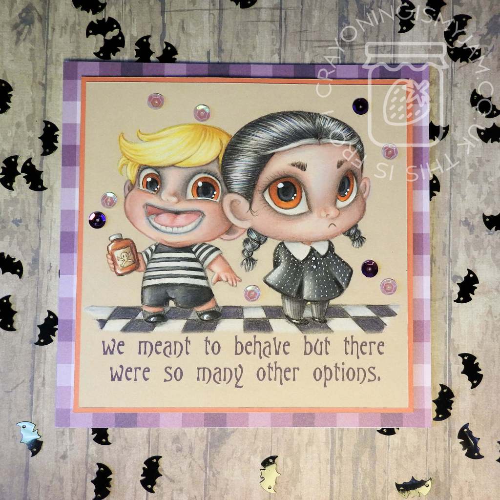 Really excited that Elvi Studio has given a little Addams Family upgrade to Billy and Lola! They are so cute, and so much fun to colour! Wednesday’s brother often has a different name, in film/tv versions and internationally, no idea why!