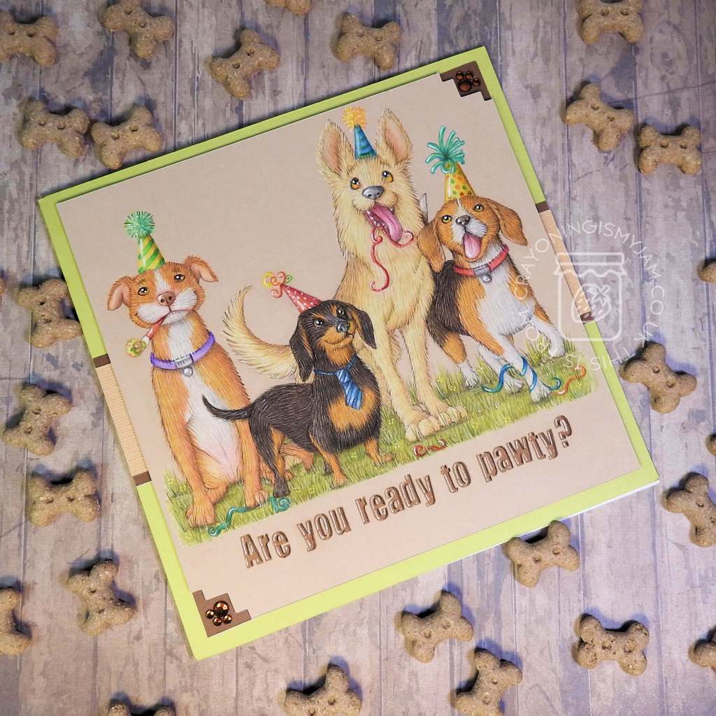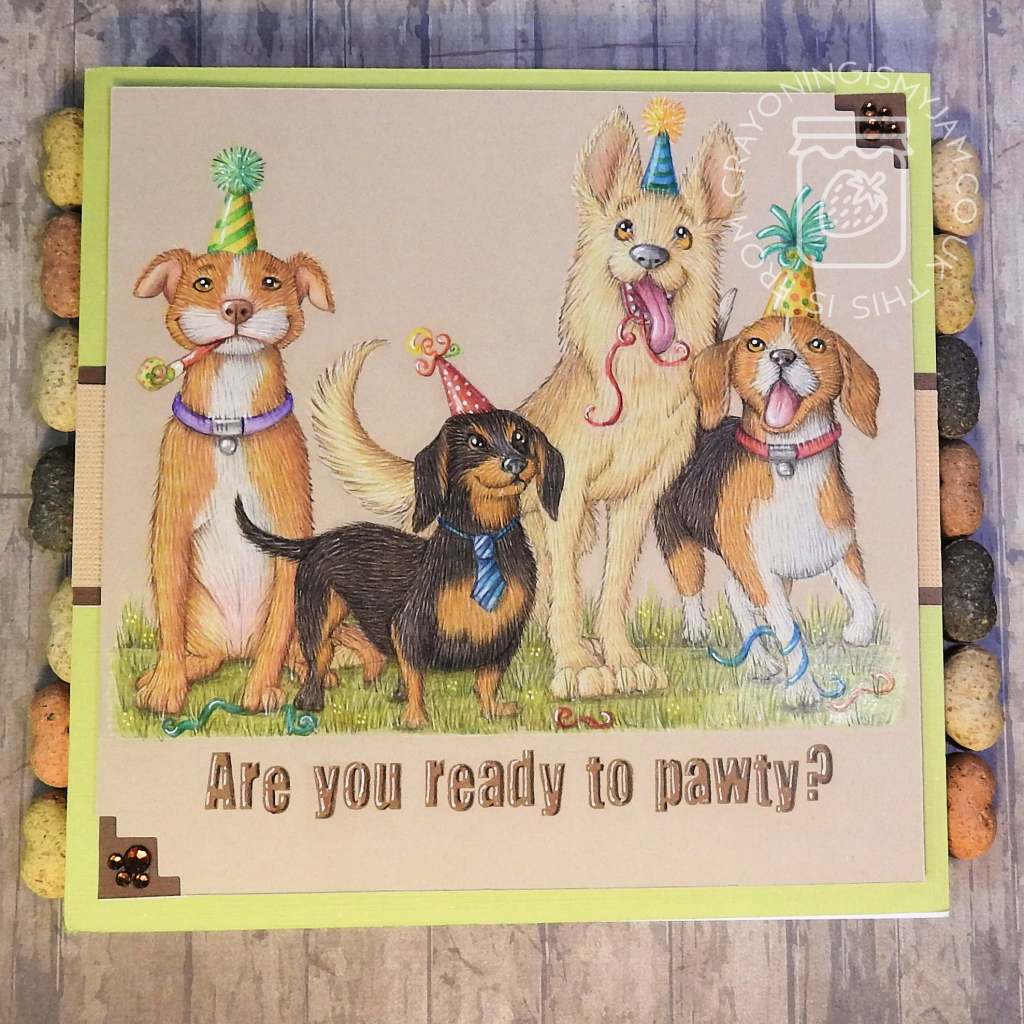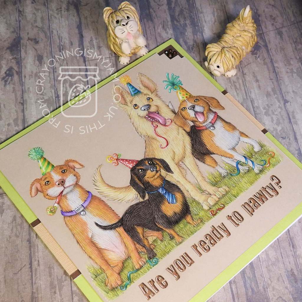 I decided to emphasise my sentiment by putting all the dogs in party hats, ties and having some bits of streamers knocking about 😀 A conical party hat is easy to draw, so a quick addition if you want to personalise your version of the stamps!