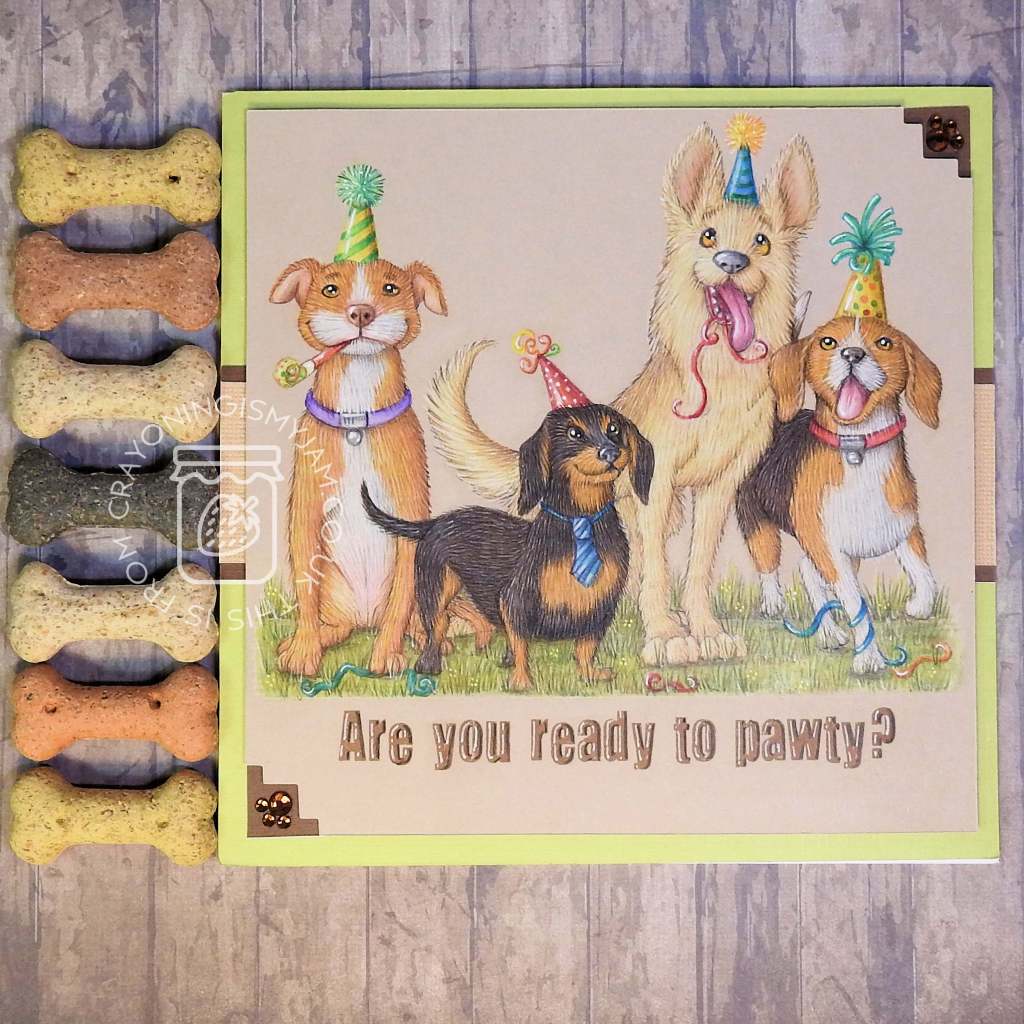 I used the four dogs in the set together, layering the picture files over each other to make a pack of dogs! All ready to paw-ty, lol! Here is what the digistamps look like for – Snickers, Pickle, Harley and Rozzy. You can see they all come with their own toy too!