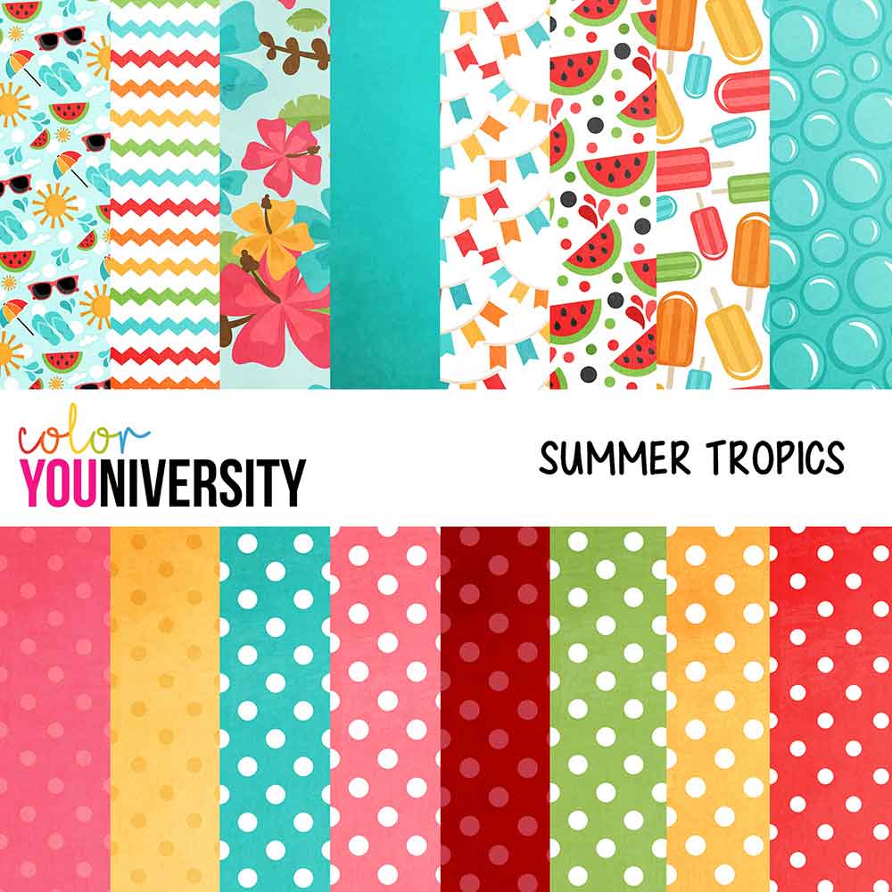 I used some red cardstock from the stash and green spotted paper from the Summer Tropics Paper Pad for layering my image onto my 6×6 card blank.