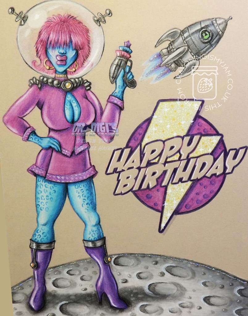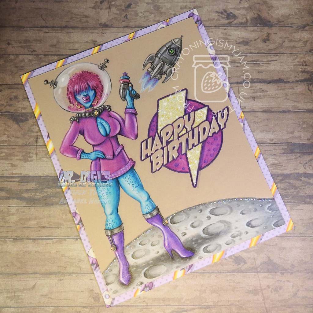 I also used the Comic Sentiment Sheet 01 and the Retro Rocket Digistamp