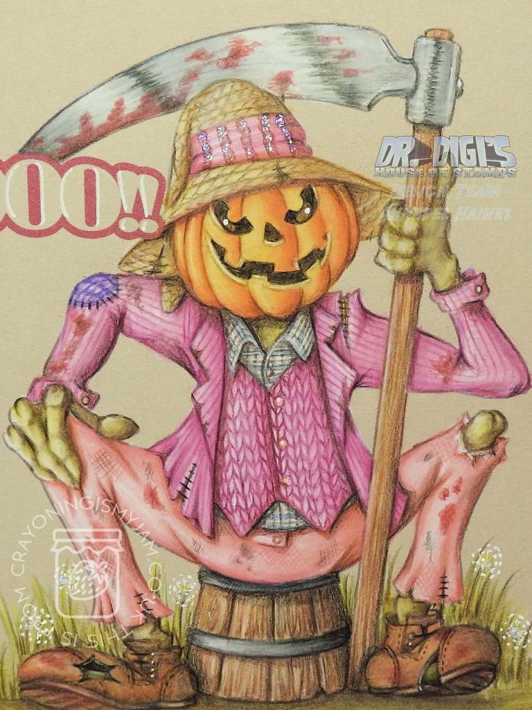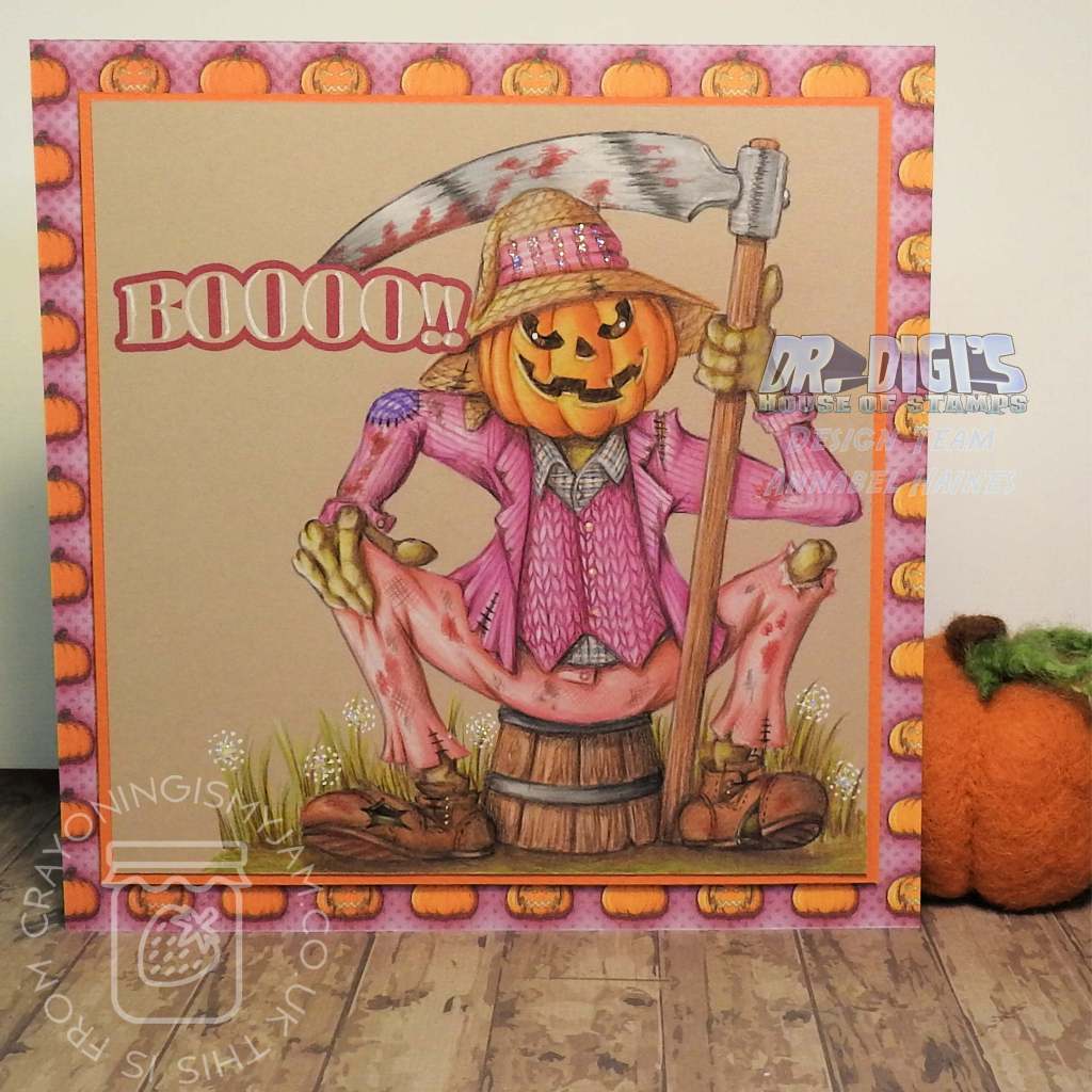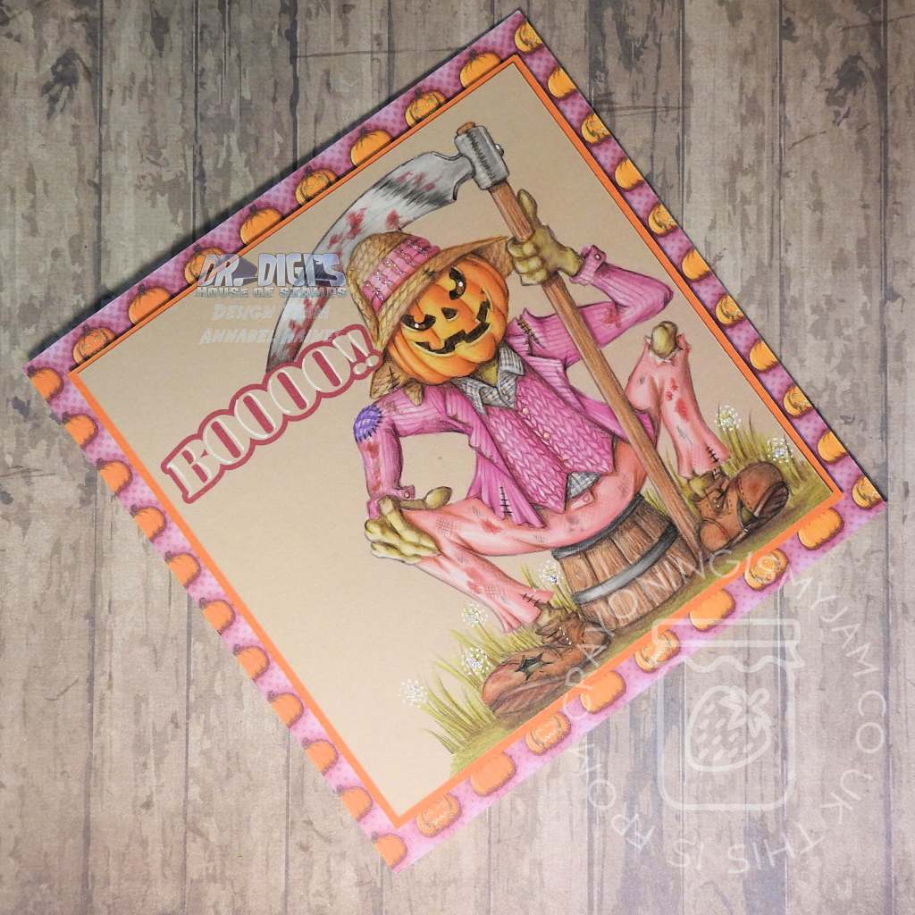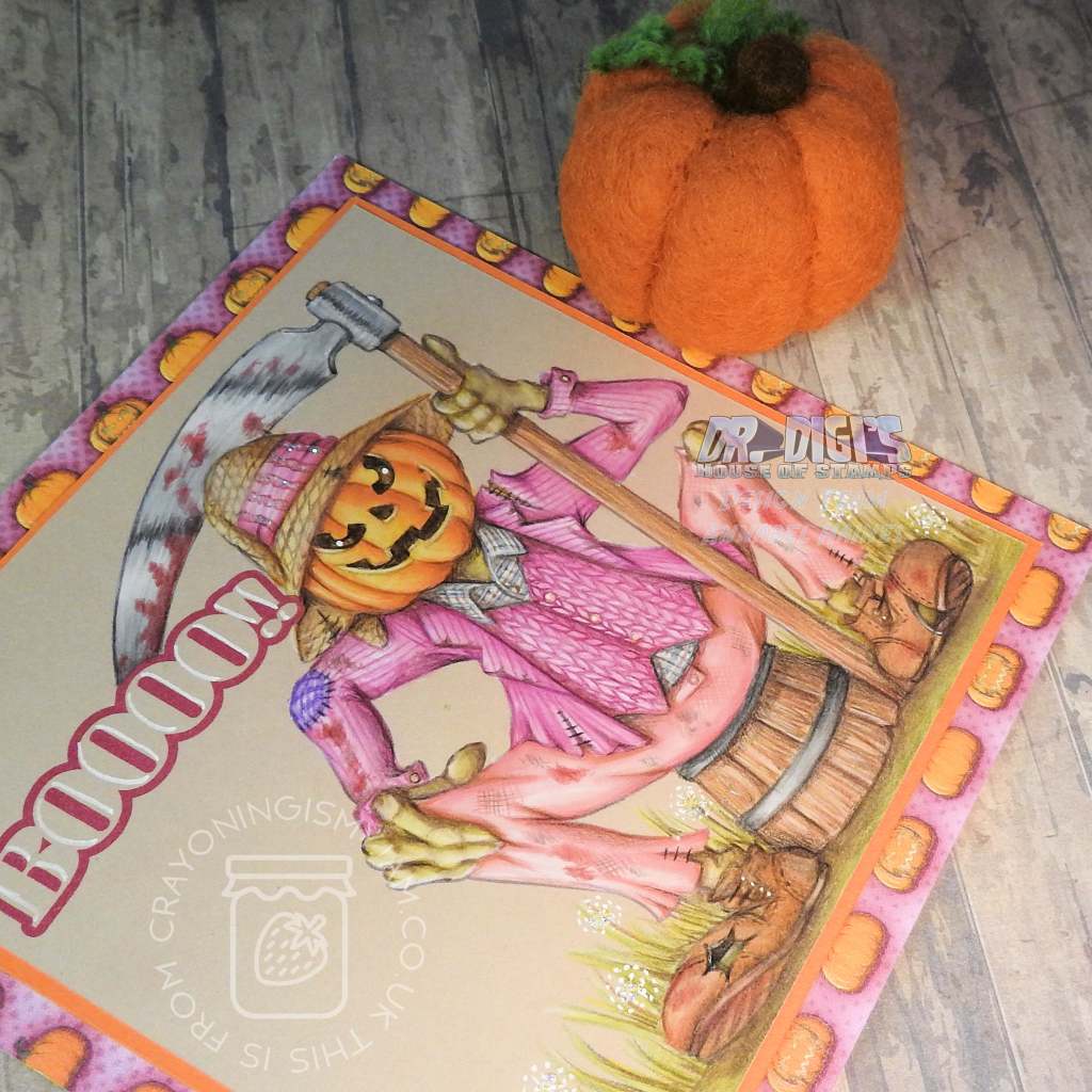 I love Halloween images, it feels like I can colour any colour or texture I like and just combo them together in a kind of mad way! Hence I wanted to do him in pinks and browns, and I have no idea why he got a blue plaid shirt!