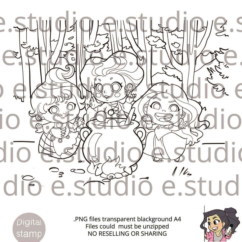 Extra Elvi Studio post today! Featuring this fine selection of witches!! Have you seen the new movie yet? What did you think? I really enjoyed it, tho the first one was kinda more creepy and fun? Elvi Studio has some awesome fanart-style stamps! So you if you are a member you can download the complete image for free, or as non-member you can purchase the witches as 3 stamps! Winnie, Sarah and Mary.