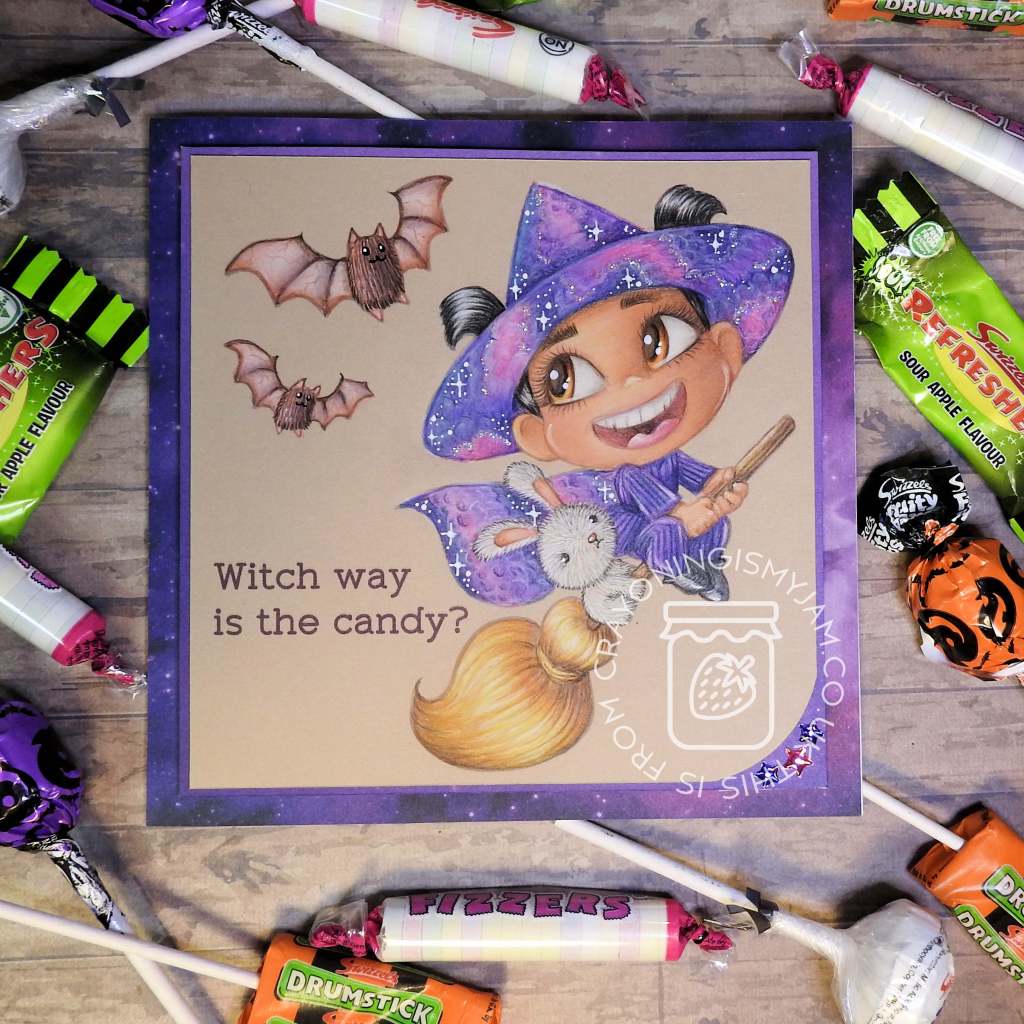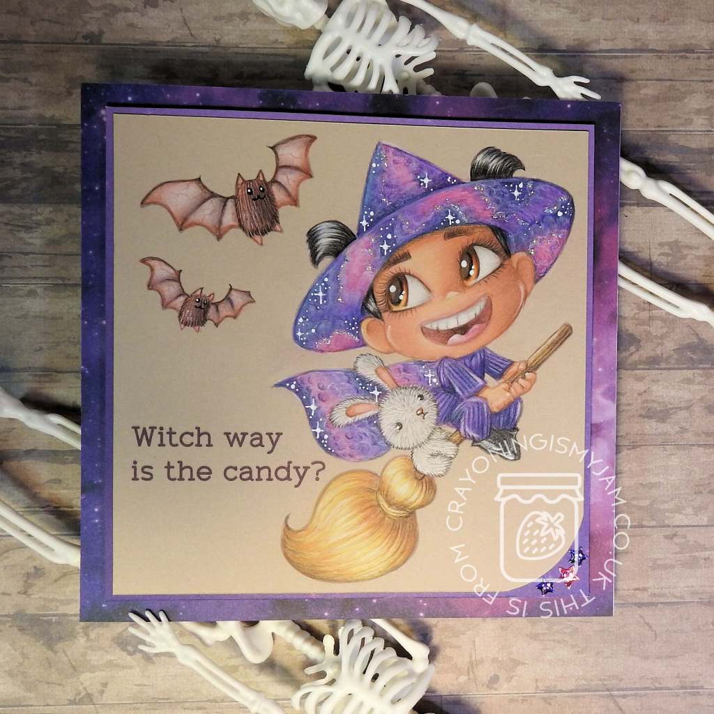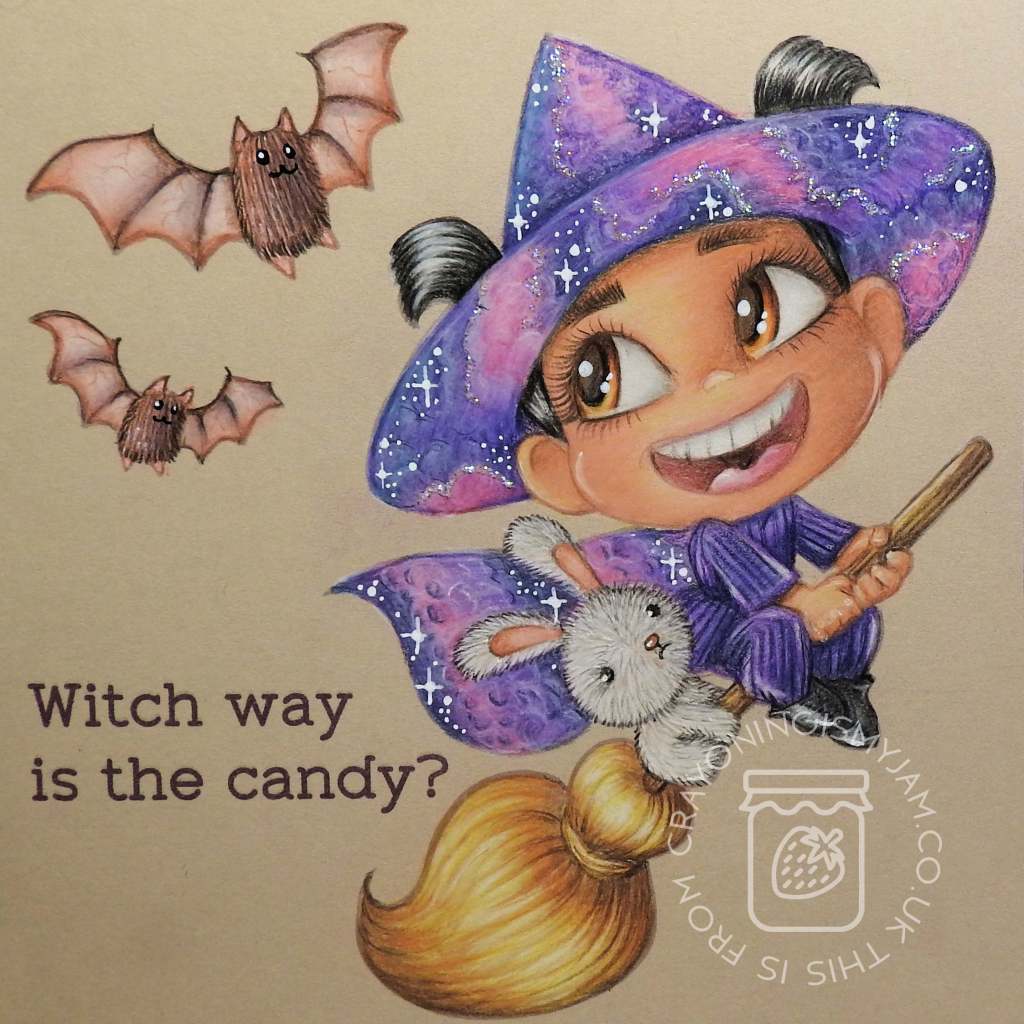 It’s nearing the witching hour! And I popped in a couple of extra cards using witches from Elvi Studio! Perfect images to share with kids, not all the things I colour are very kid friendly! lol. This is Lola Witch!