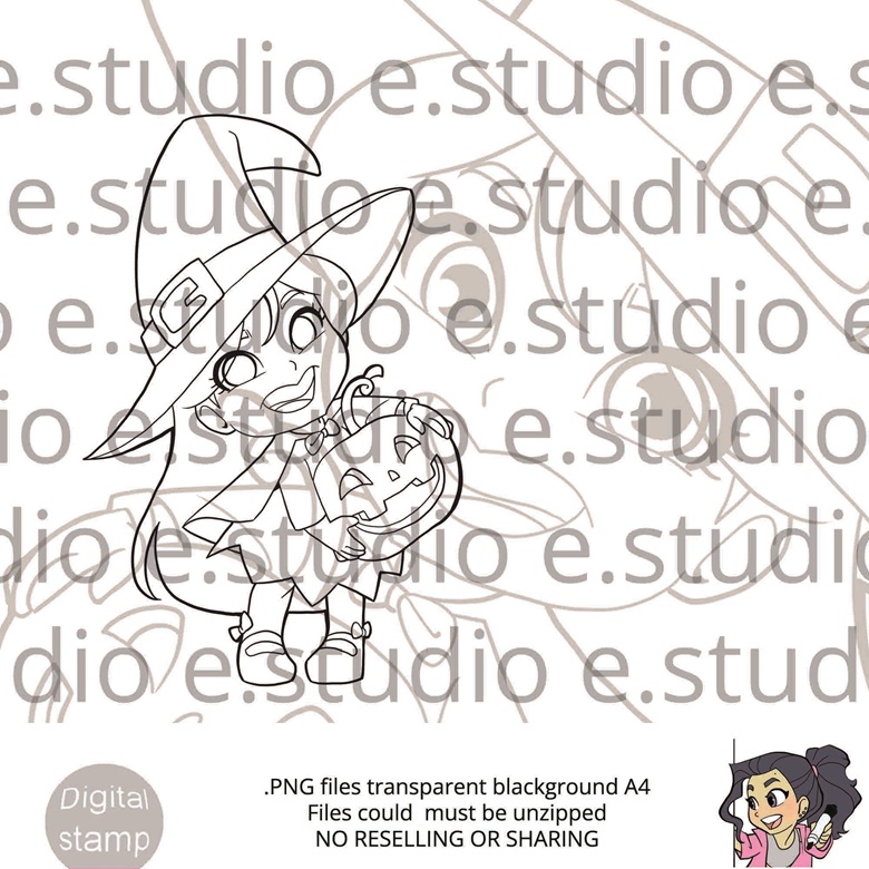 This is my second weekend Elvi Witch post! The first one is here. This digistamp is called Brujita Meiga! (poor translation from me – Little wise witch!) And she is a super cute (kid-friendly!) witch!!