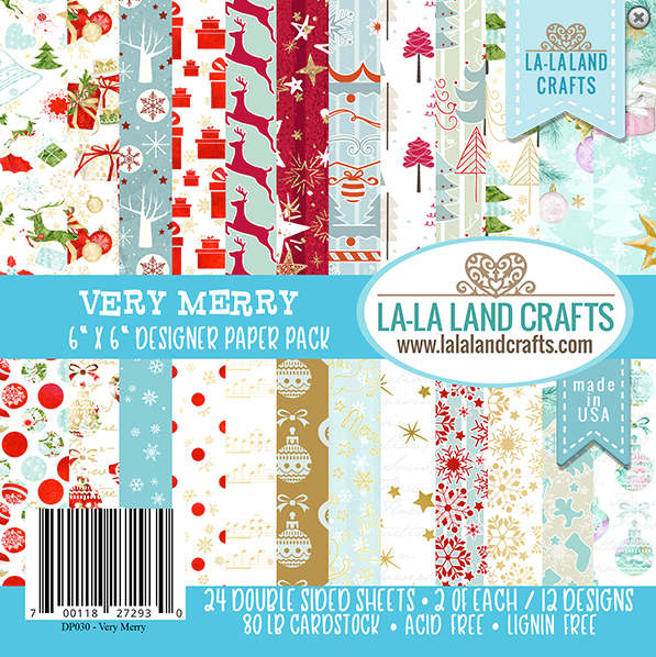 I was also very kindly sent a few La La Land Crafts products to work with including the Very Merry Paper Pack (beautiful set of papers, I felt awful covering most of this 6×6 up!) and the Wreath with Bow Die.