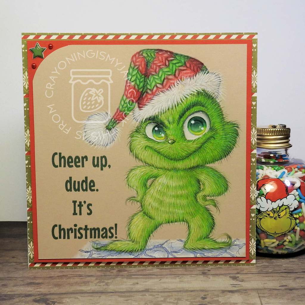 Newly released Grinch stamp from Elvi Studio today, isn’t he fabulous!?? Also, all that grinchy fluff is just my cup of tea!