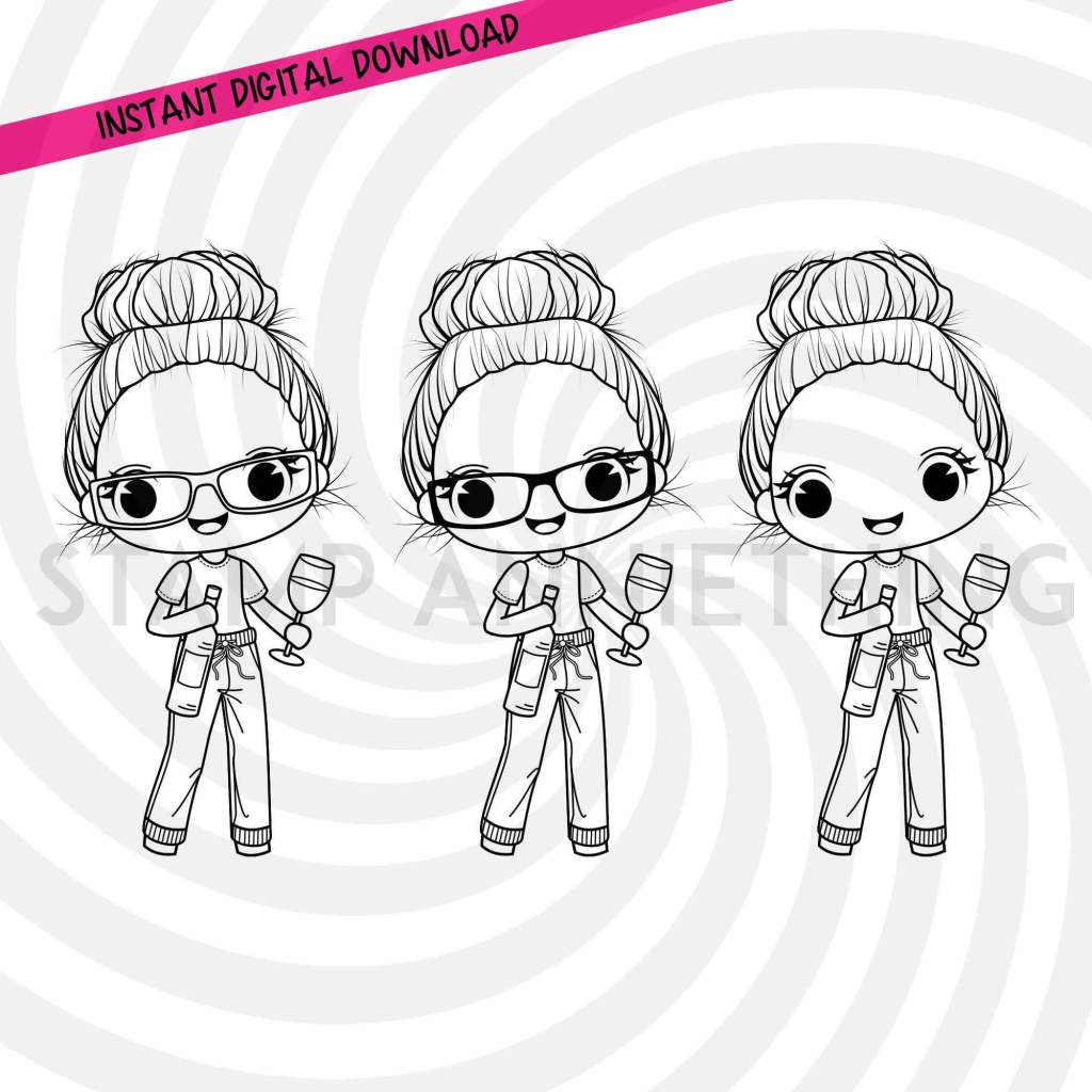 And here is super large close up of my version, I used the digistamp furthest left. She is coloured with Polychomo Pencils AND Posca Pens! I have been trying to include coloured paint pens in my colourings, see what new effects I can get! Not sure what I think yet, a work in progress! lol! I used Kendal Manilla Buff Cardstock (Being restocked soon!) to colour on.